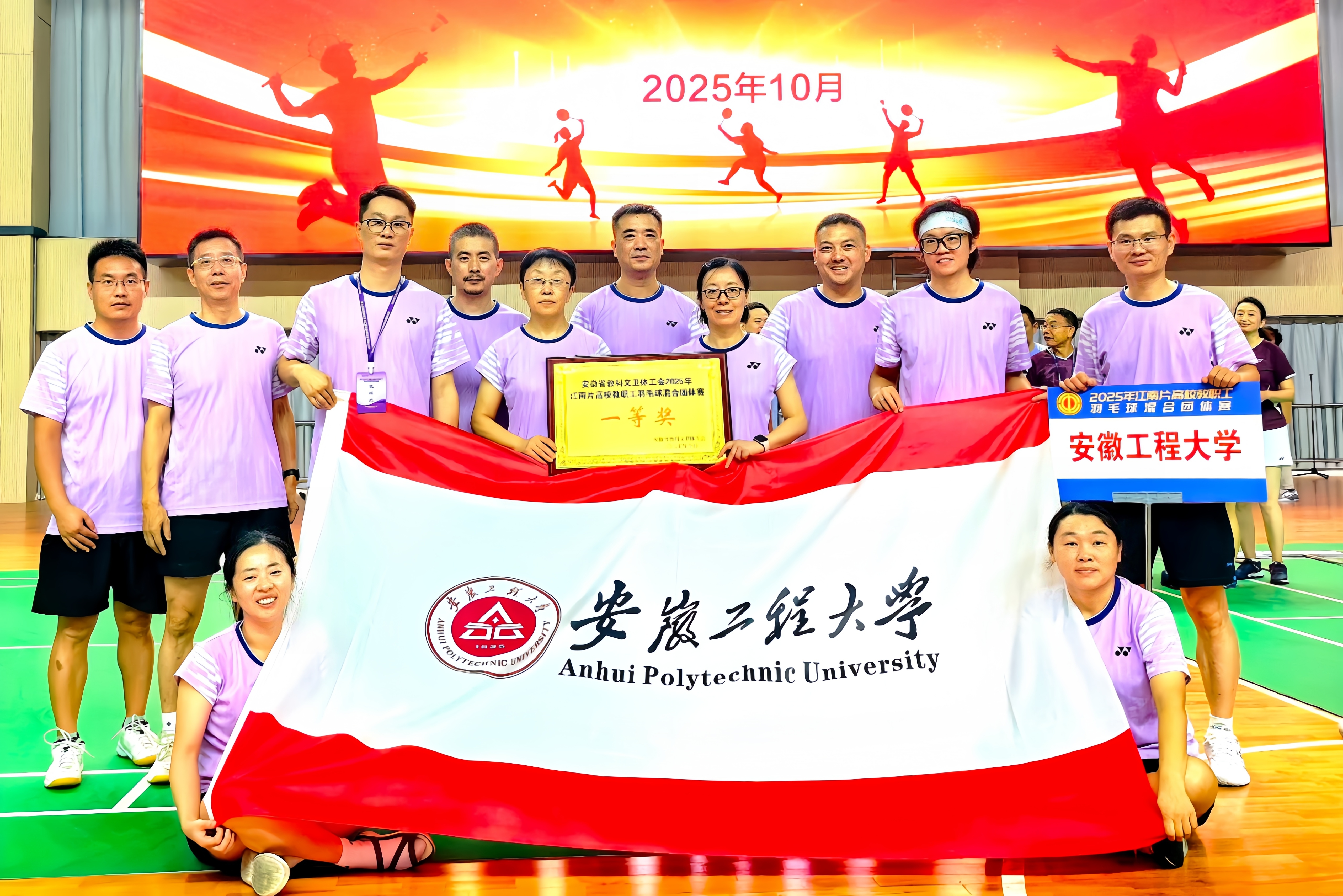 本网讯 10月10至12日,2025年江南片高校教职工羽毛球混合团体赛在铜陵学院举行。经过激烈角逐,我校教职工羽毛球代表队斩获一等奖,获得历史性突破。