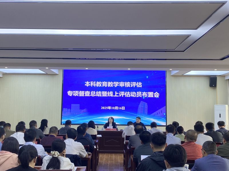 本网讯 10月16日,学校在A座1314会议室召开本科教育教学审核评估专项督查总结暨线上评估动员布置会。副校长周虹屏、王成军出席会议,各学院、各部门主要负责人和联络员参加会议。周虹屏主持会议。