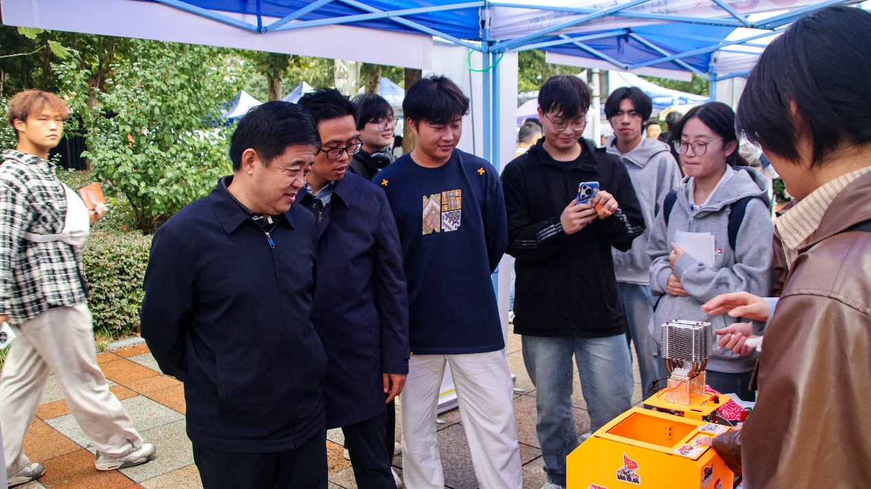 本网讯 10月18日,大学生“一站式”社区青年广场热闹非凡,“九秩芳华岁月稠 薪火相传启新程”为主题的社团文化节暨社团纳新活动在此举行。15个校级学生组织与67个学生社团参与招新。活动期间,校党委常委、副校长张开炳深入各个活动展区,与同学们亲切交流。