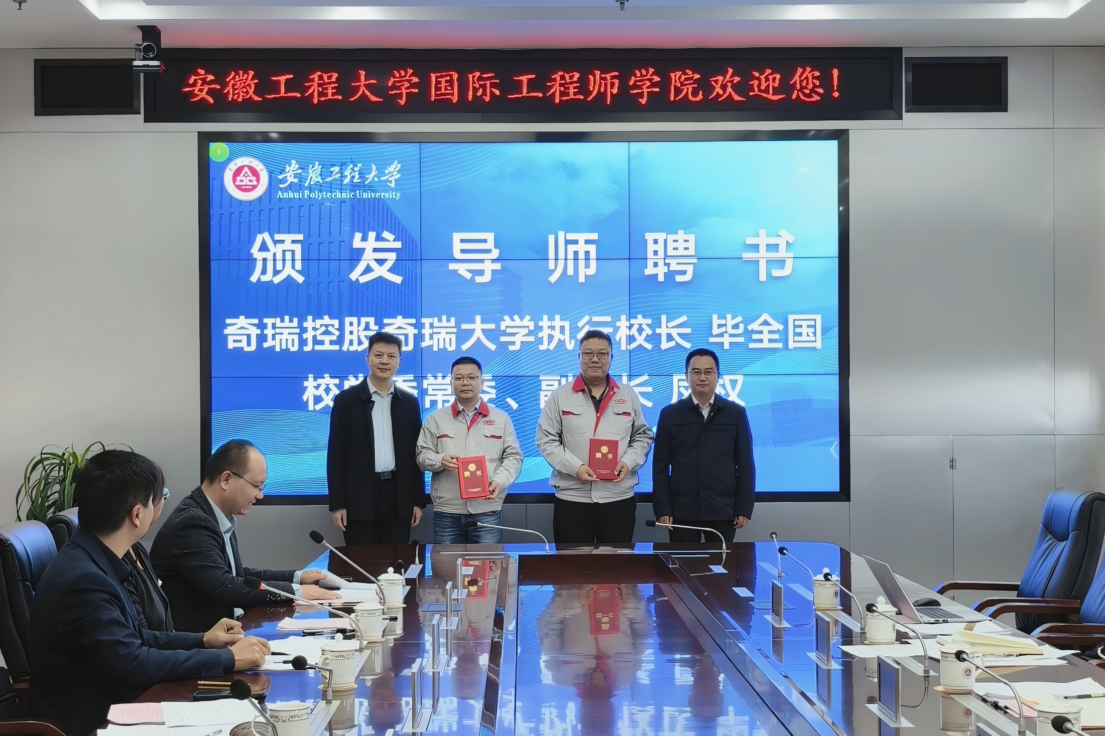 开班式上,开展“奇瑞学院研究生班旗”授旗,为奇瑞学院研究生联合培养导师颁发聘书。奇瑞公司全球技术创新中心产品开发技术中心智能开闭部部长俞克胜,机械与汽车工程学院副教授王安恒,计算机技术专业研究生张远卓分别代表企业导师、校内导师、研究生班学员发言。与会人员就相关工作进行介绍。
