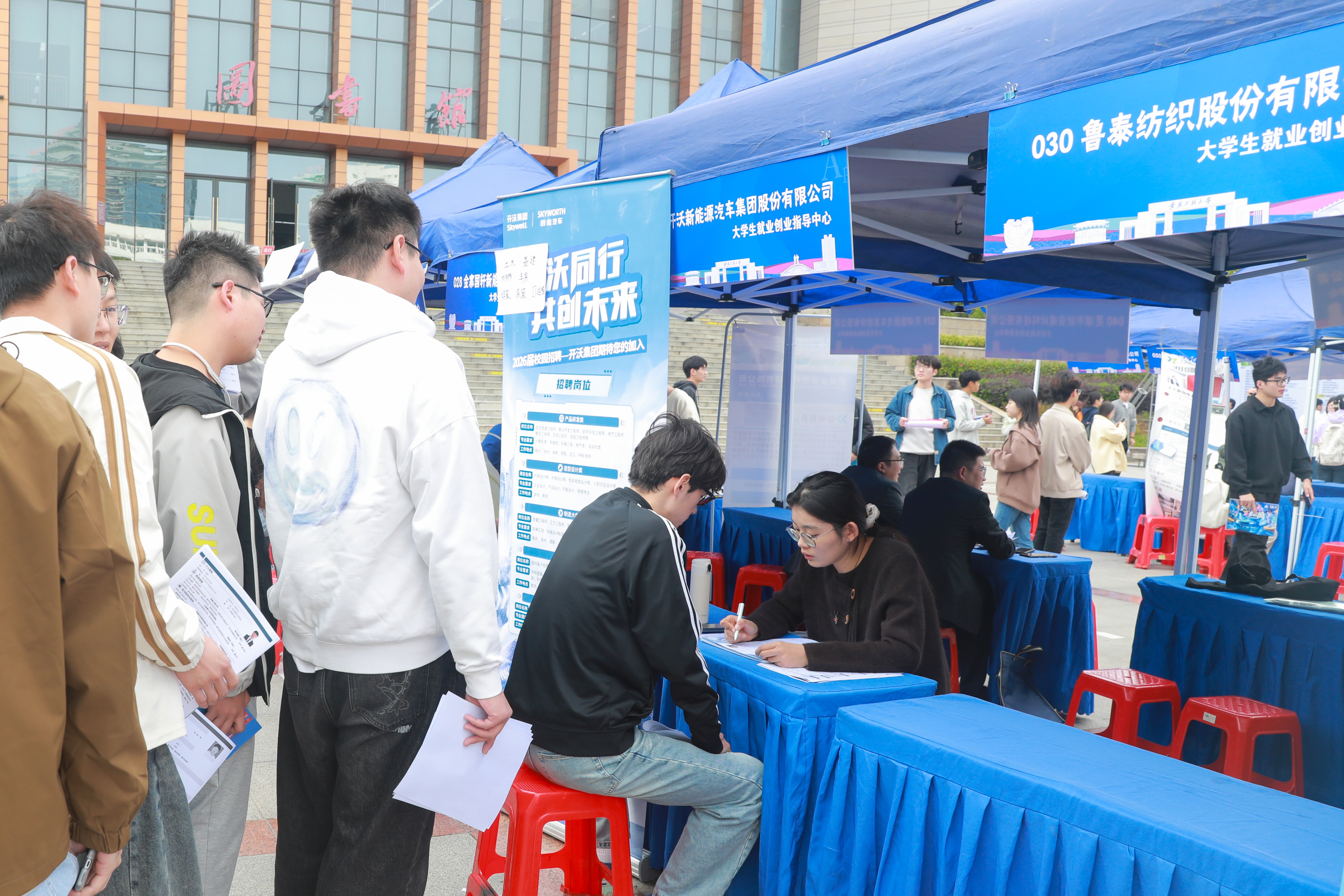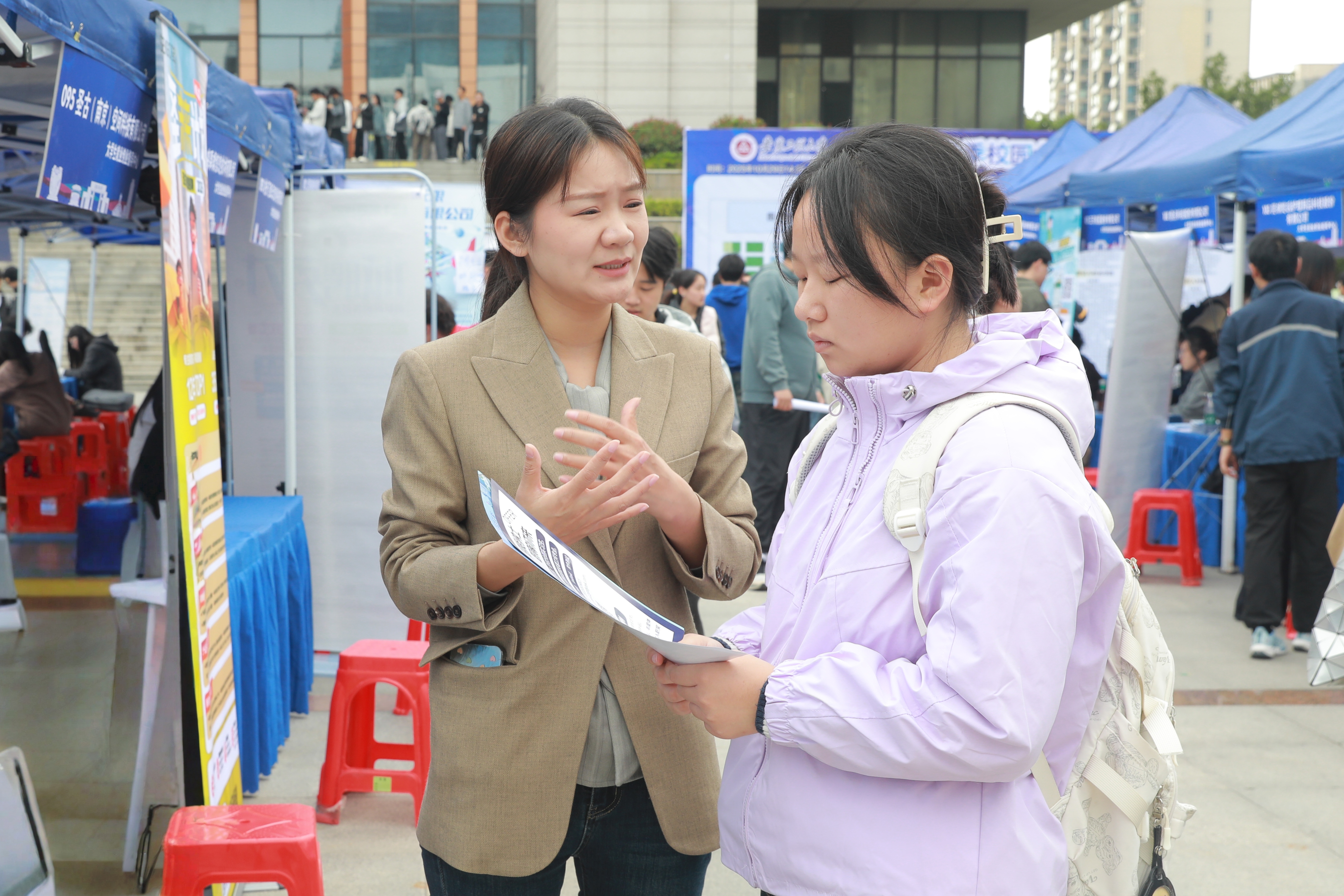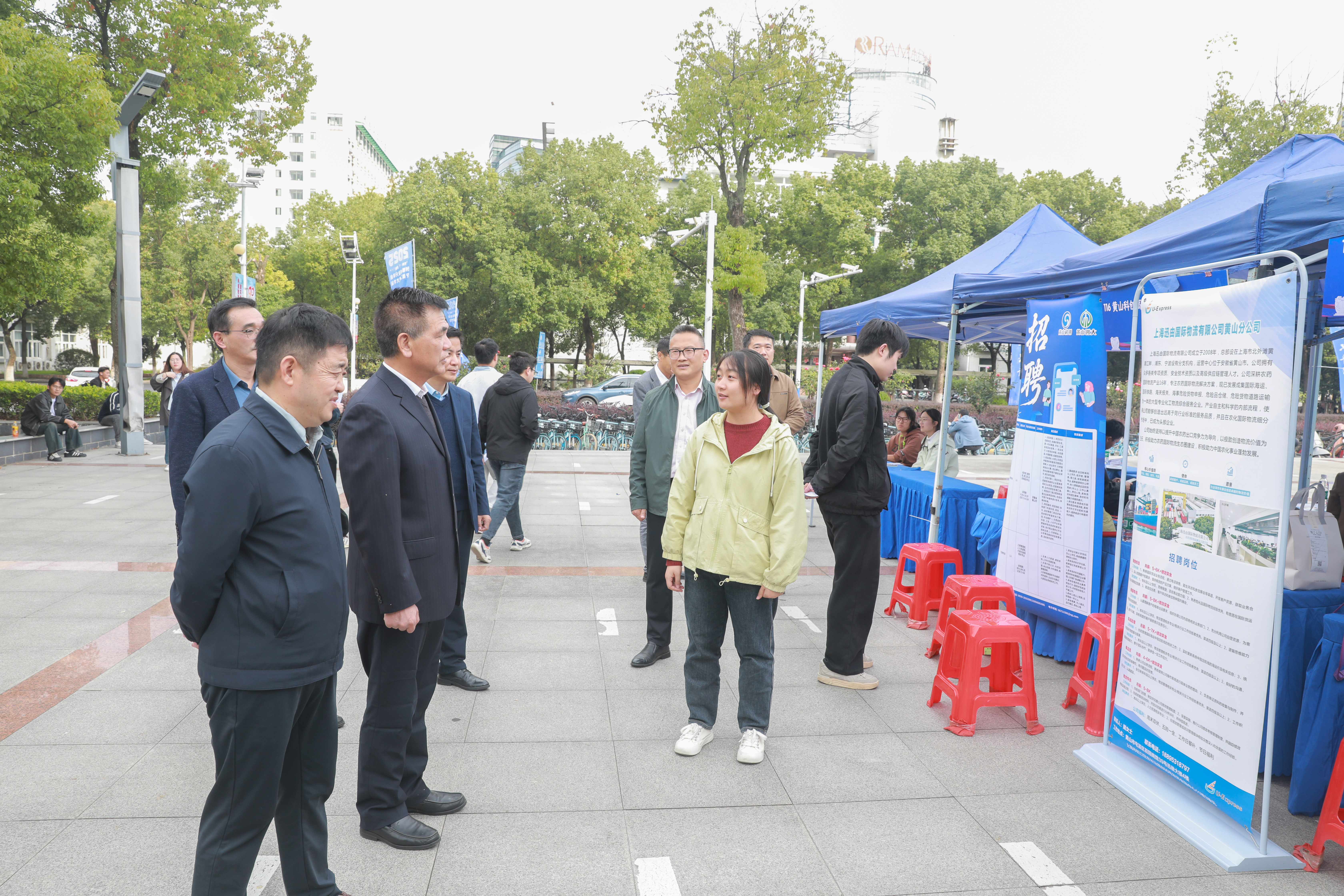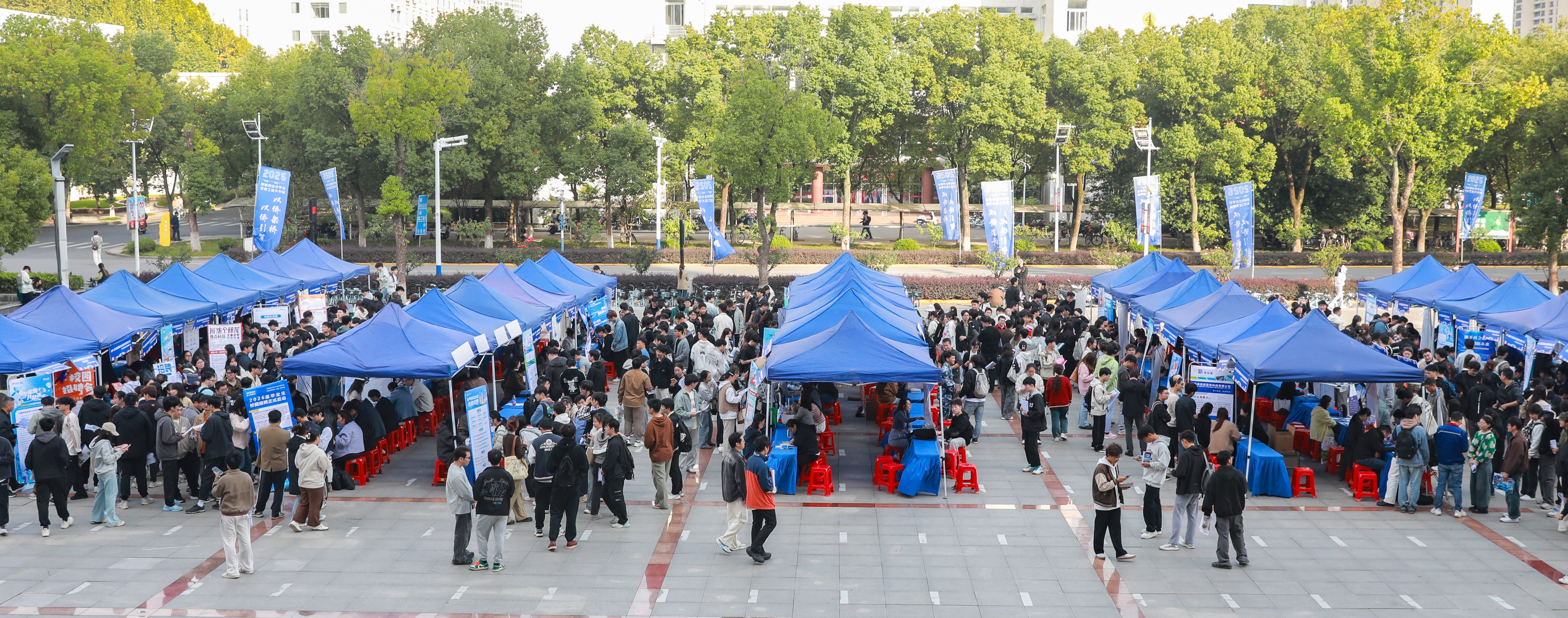 本网讯 10月29日,学校在图书综合楼广场举办2026届毕业生秋季校园大型双选会。校党委书记卢平,校党委常委、副校长张开炳深入招聘会现场指导就业工作。