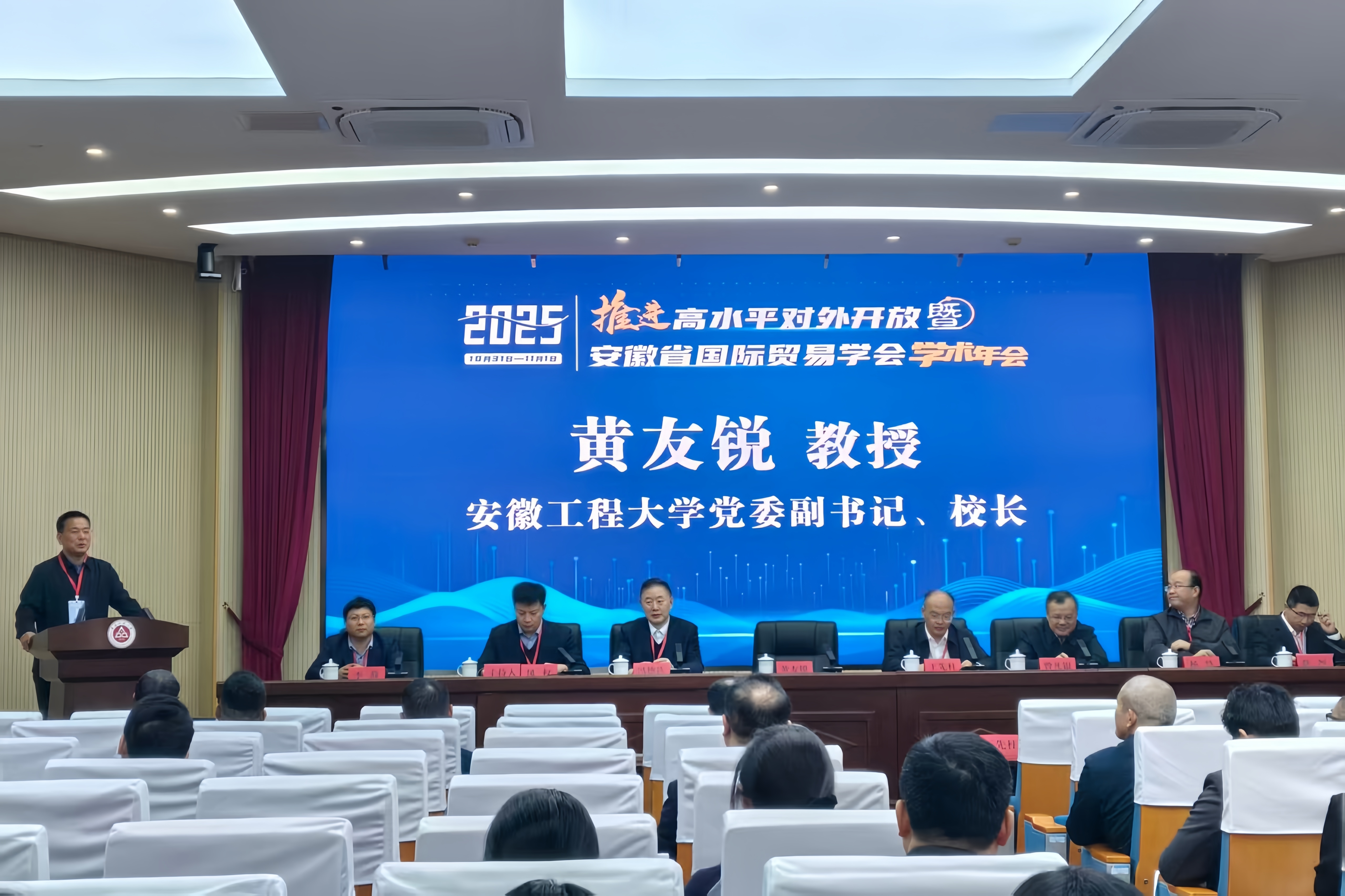 本网讯 10月31日至11月1日,由安徽省国际贸易学会、RayBetApp官网下载 主办,RayBetApp官网下载 经济与管理学院、RayBetApp官网下载 青年社科学者协会承办,安徽三联学院协办的推进高水平对外开放暨2025年安徽省国际贸易学会学术年会在我校举办。校党委副书记、校长黄友锐,安徽省国际贸易学会会长冯德连,安徽省社科院原院长、党组书记曾凡银,池州学院党委副书记、校长王先柱,我校党委常委、副校长凤权出席开幕式。开幕式由凤权主持。