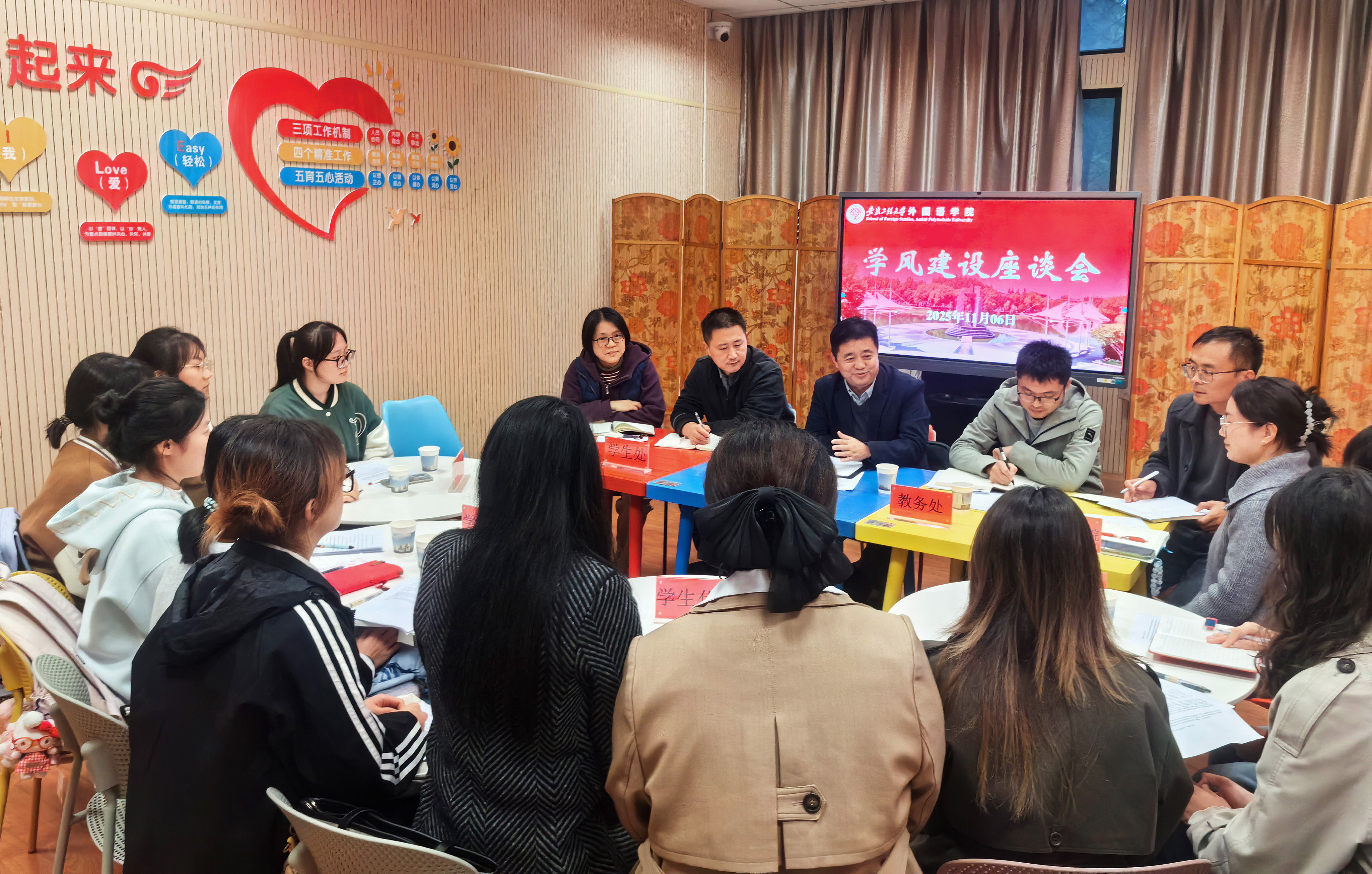 本网讯 “图书馆的外文书籍可以更丰富些吗?”“‘考研党’急需专业指导!”“宿舍楼道环境还能再升级一下不?”……11月6日,外国语学院学生社区“SMILE”阳光驿站里格外热闹,一场别开生面的学风建设座谈会正在这里火热进行中。校党委常委、副校长张开炳带领相关部门负责人与同学们开启了一场面对面的“零距离”畅聊。