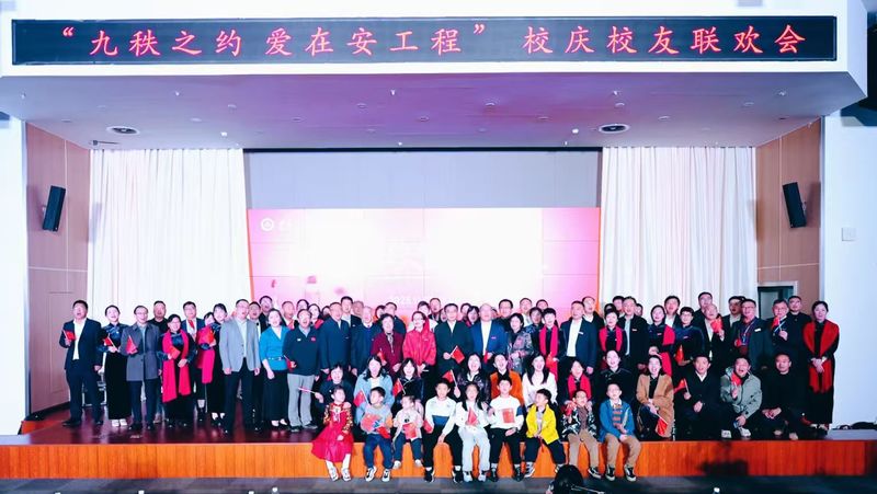 校友联欢晚会上,暖场环节播放的学校宣传片与校友伉俪照片集锦,瞬间将大家带回青涩的校园时光。晚会分为“缘起・青春记忆”“奋进・岁月如歌”“感恩・薪火相传”三个篇章,校友与师生联袂献艺,共同演绎着青春与岁月的交响。学校原广播站的4名校友代表声情并茂地朗诵了由校友总会创作的诗歌《九秩之约,爱在安工程》,每一个字都连接着一代人的青春。萨克斯独奏《回家》悠扬动人,舞蹈《爱》柔美灵动,歌曲串烧《校园的早晨》《一生有你》等经典曲目引发全场大合唱,地方校友会十佳歌手与大学生艺术团的精彩演绎,让台上台下融为一体,成为一片欢乐的海洋。老教师的倾情加盟,将氛围推向了高潮。参加活动的校友夫妇也以不同的方式表达了对母校的爱心。