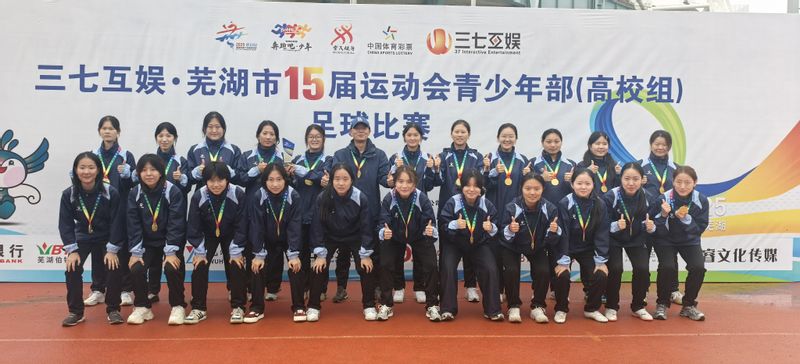 本网讯 11月10日,芜湖市第十五届运动会青少年部(高校女子组)足球比赛落幕。校女子足球队以三战全胜进23球的战绩,勇夺女子组冠军,成功实现这项赛事“三连冠” 。