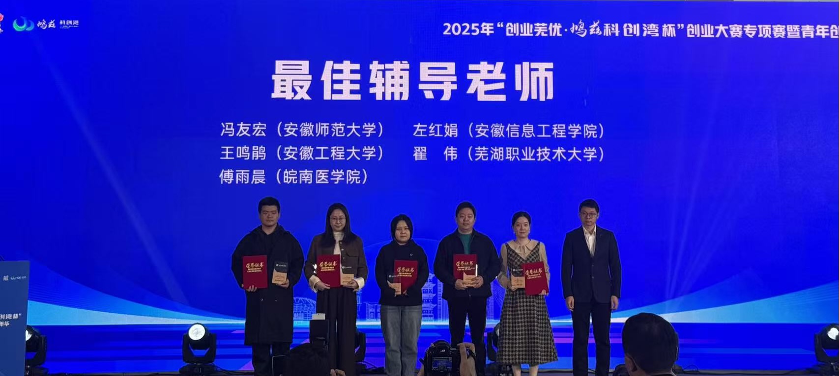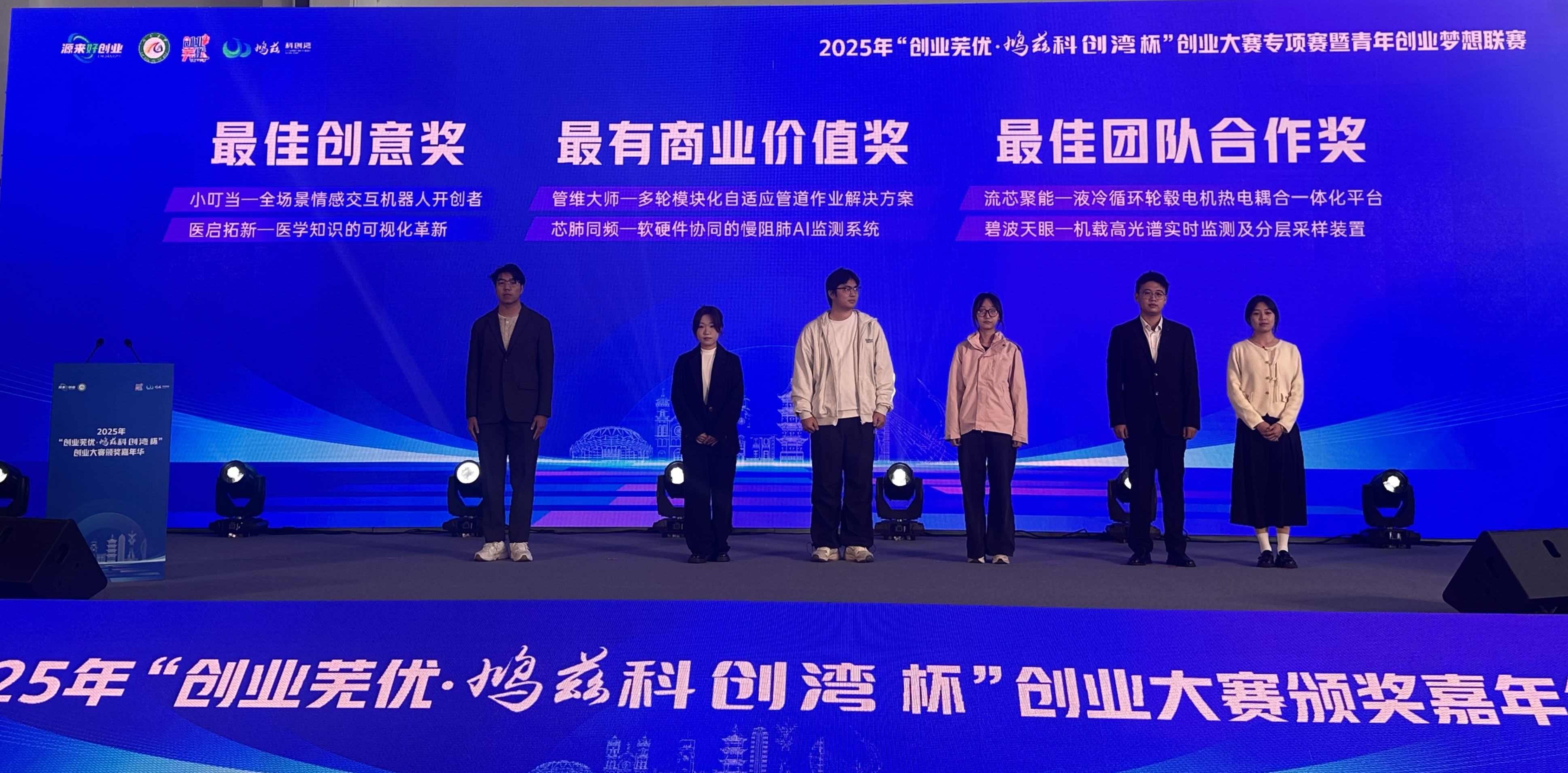 本网讯 11月16日,2025年“创业芜优・鸠兹科创湾杯”创业大赛专项赛暨青年创业梦想联赛圆满落幕。我校五个入围决赛项目全部获奖,荣获最佳创意奖1项,优秀奖4项。学生处王鸣鹃老师荣获“最佳辅导老师奖”。