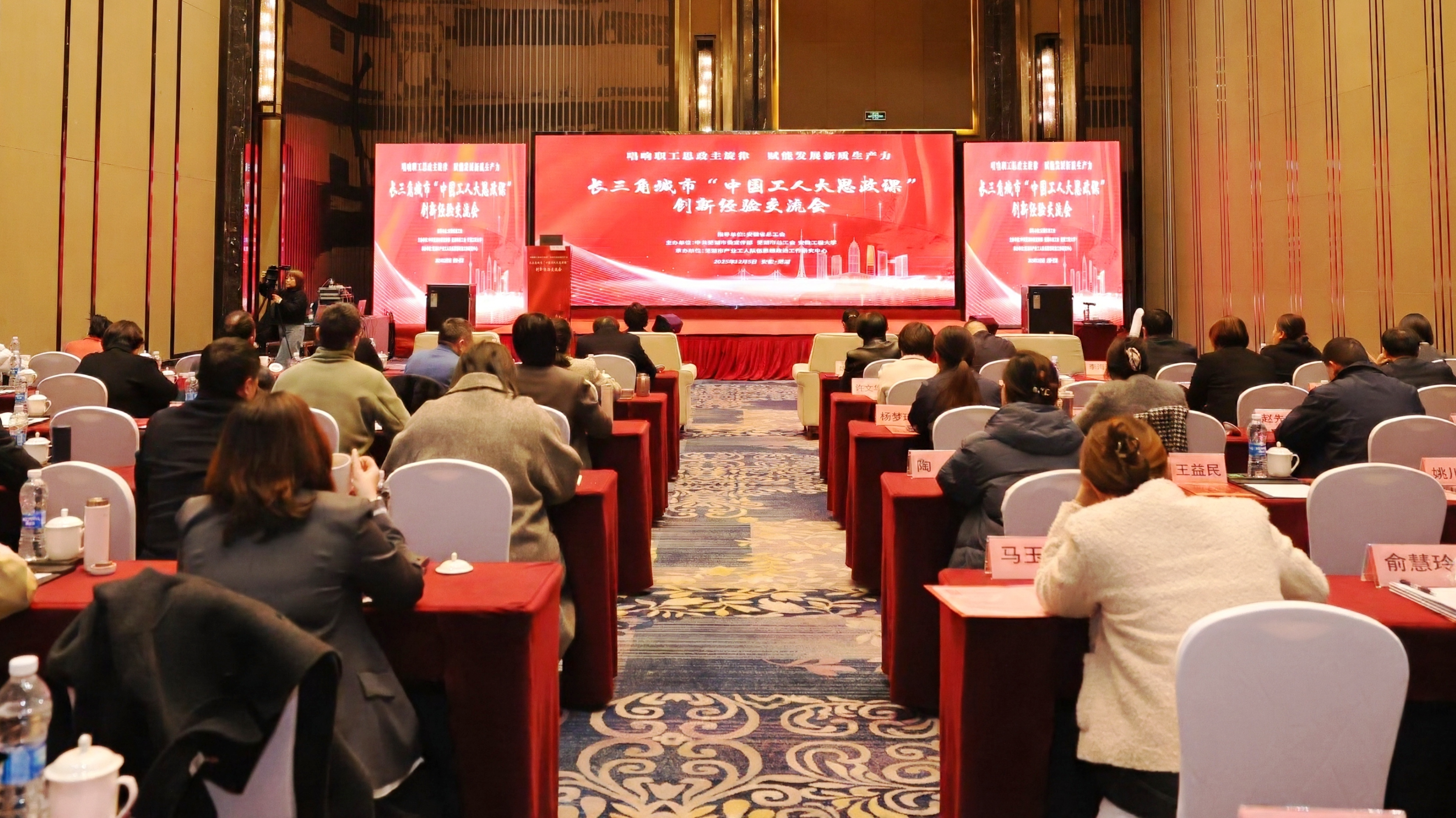 本网讯 12月5日,由芜湖市委宣传部、芜湖市总工会、RayBetApp官网下载 联合主办的长三角城市“中国工人大思政课”创新经验交流会在我校举行。安徽省总工会党组成员、副主席朱颖,芜湖市一级巡视员、市总工会主席董萍,我校党委副书记郑健,中华全国总工会研究室副主任李羿,芜湖市委宣传部、全省各地市总工会、长三角部分城市总工会负责人,相关企业工会负责人,芜湖市产业工人队伍思想政治工作研究中心相关人员参会。会议由董萍主持。