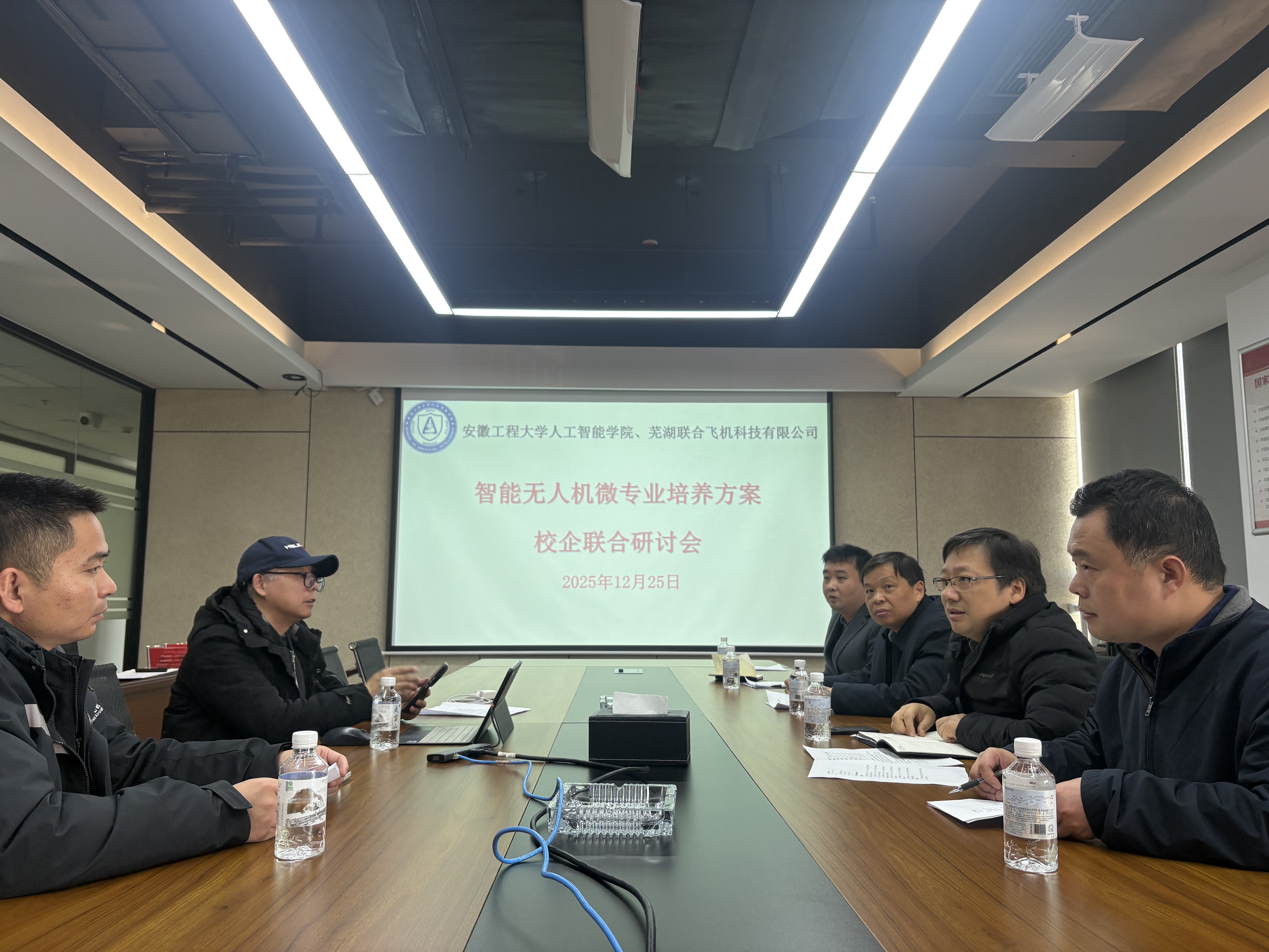 本网讯 12月25日,人工智能学院围绕智能无人机微专业建设,赴芜湖联合飞机科技有限公司开展校企联合调研与专题研讨。学院党委书记任家钱、副院长赵转哲,芜湖联合飞机公司试飞中心主任陈玉玺,学院相关系部教师,芜湖联合飞机公司相关人员参加活动。