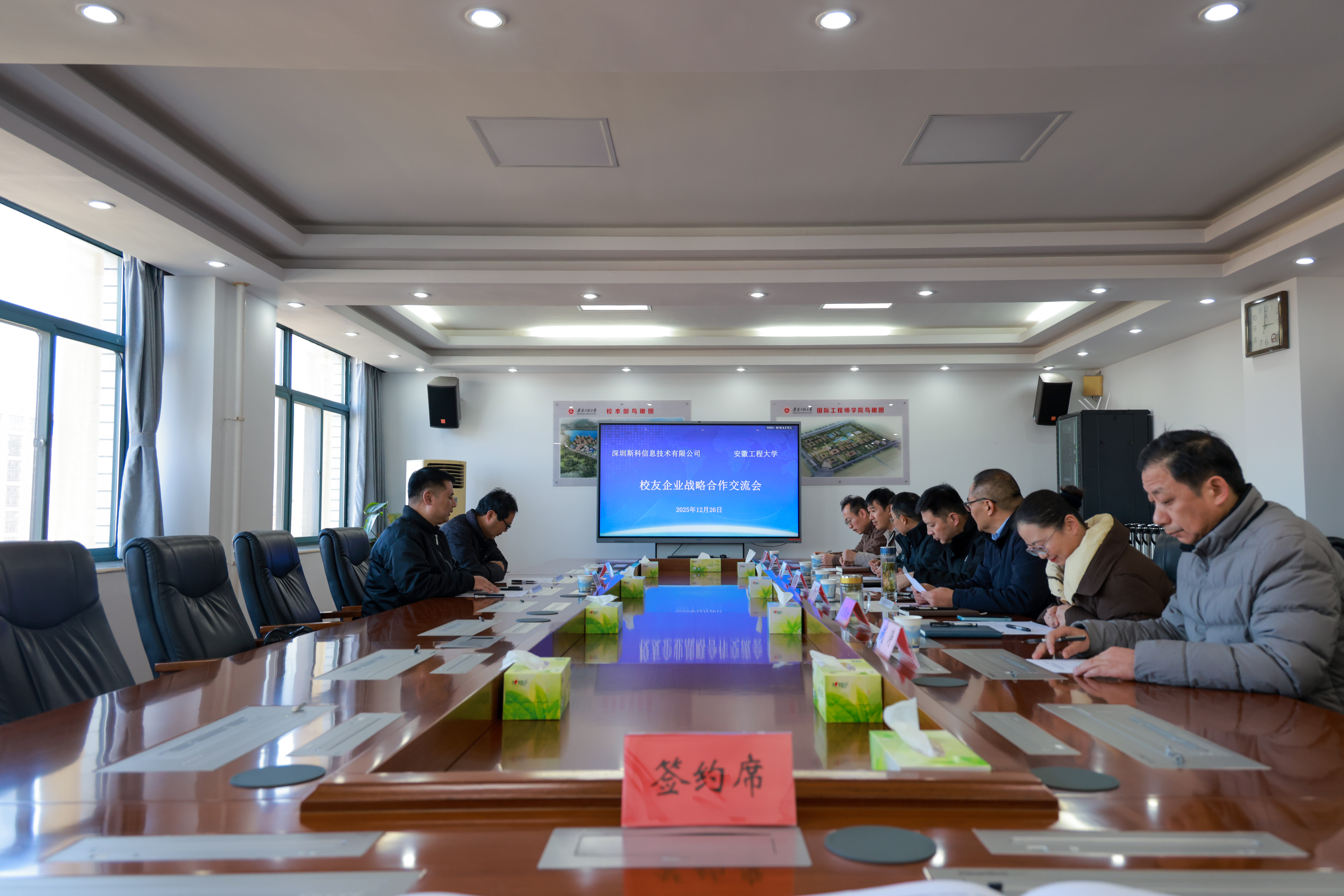 本网讯 12月26日,深圳市斯科信息技术有限公司董事长、设计98级吴红雁校友一行来校洽谈并签署校企合作协议。校党委常委、副校长凤权出席签约仪式,相关职能部门、学院负责人参加