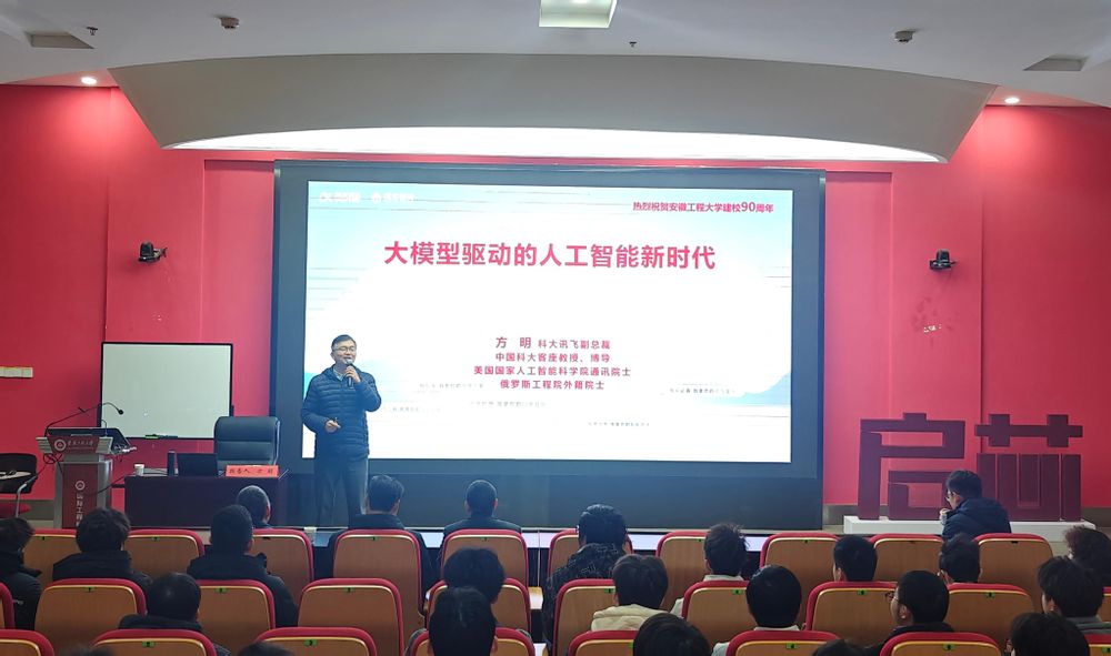 本网讯 12月27日上午,集成电路学院在国际工程师学院梦溪报告厅举办“启芯”系列校友专场报告会,献礼RayBetApp官网下载 90周年校庆。学院特邀电子90级校友、科大讯飞副总裁、博士生导师、美国国家人工智能科学院通讯院士、俄罗斯工程院外籍院士方明返校,作题为《大模型驱动的人工智能新时代》的专题报告。学院领导班子、师生代表200余人参加,现场反响热烈。
