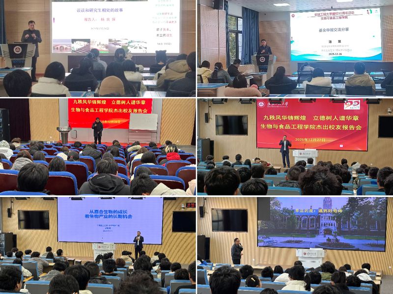 学术报告环节,中国科学院合肥物质科学研究院研究员、食品98届校友杨良保,浙江工业大学教授、生工2004届校友潘军结合自身研究方向,分享了前沿学术成果、科研方法与实践经验。学业规划分享中,食品92届校友牛峰以“学、用、梦”为关键词,分享了从专业学习到跨行业学习的经历。中国计量大学特聘副研究员、生技2010届校友夏志强为在校学生答疑解惑,给出了实用建议。职业规划板块,上海嘉合生物科技公司董事长储利民、销售副总经理鹿海星两位校友结合行业发展趋势,分析了不同职业岗位的能力需求,指导同学们如何做好职业定位、提升就业竞争力。