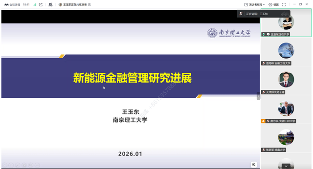 王玉东以《新能源金融管理研究进展》为题,阐述了促进新能源发展的金融管理研究框架,系统介绍了新能源金融管理中金融预测、风险管理、资产定价及政策评估等科学问题的解决方案,并提出通过防范新能源市场风险实现稳定目标、优化投资与政策设计推动新能源发展的系统思路与实施路径。