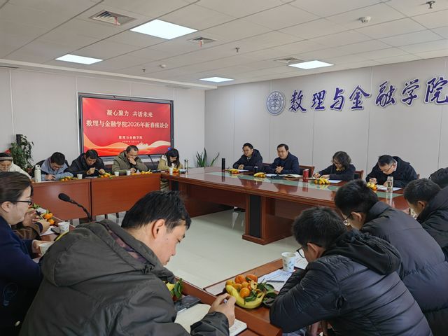 本网讯 1月15日,数理与金融学院“凝心聚力 共话未来”新春座谈会在学院1610会议室举行。学院党政领导班子与17名教师代表共聚一堂,围绕教育教学、科学研究、管理服务与个人发展等主题深入交流,共谋学院发展。座谈会由院长吴小太主持。