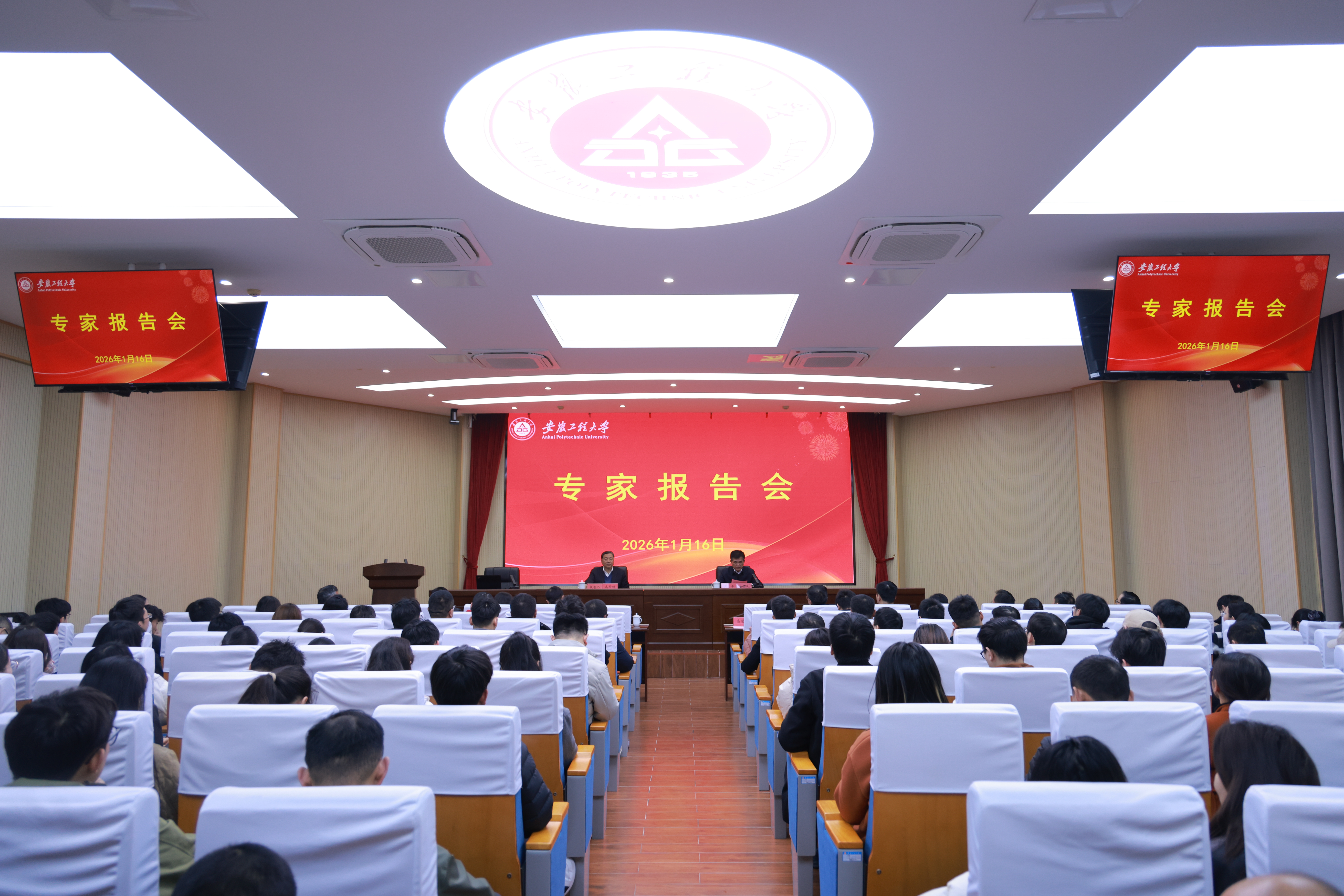 本网讯 1月16日,学校A104会议室举办专题学术报告会,邀请中国水泥协会原会长、安徽海螺集团原党委书记、董事长高登榜作题为《“双碳”目标——中国绿色征途的挑战与应对》的学术报告。校党委书记卢平,校党委副书记、校长黄友锐,校党委常委、副校长凤权,芜湖市发明协会会长汪奇燕出席相关职能部门、学院负责人及师生代表160余人参加报告会由卢平主持。