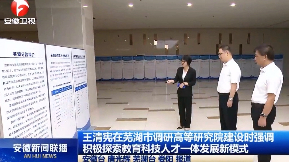 省委、省政府高度重视与关心学校发展,省领导多次来校调研,为学校高质量发展把脉定向。2025年7月30日,省委副书记、省长王清宪赴我校国际工程师学院校区,专题调研安徽高等研究院芜湖分院建设工作,实地察看信息管理系统与研究生培养情况,对学校服务支撑区域经济社会发展成效给予肯定。2025年12月28日,副省长任清华出席学校建校90周年高质量发展大会,带来省委、省政府的祝贺与关怀。2025年4月24日,省政协副主席罗平率专题调研组来校,围绕“增强高等教育综合实力,打造战略引领力量”主题开展调研,对学校近年来发展成效给予肯定。省委教育工委、省教育厅,省政府参事室等相关单位领导先后来校调研指导。