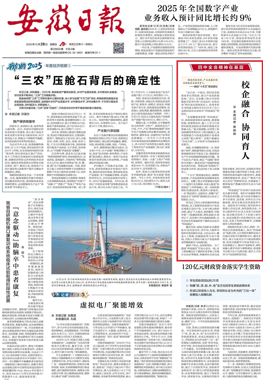 (《安徽日报》头版报道我校“科技副总”相关经验做法)