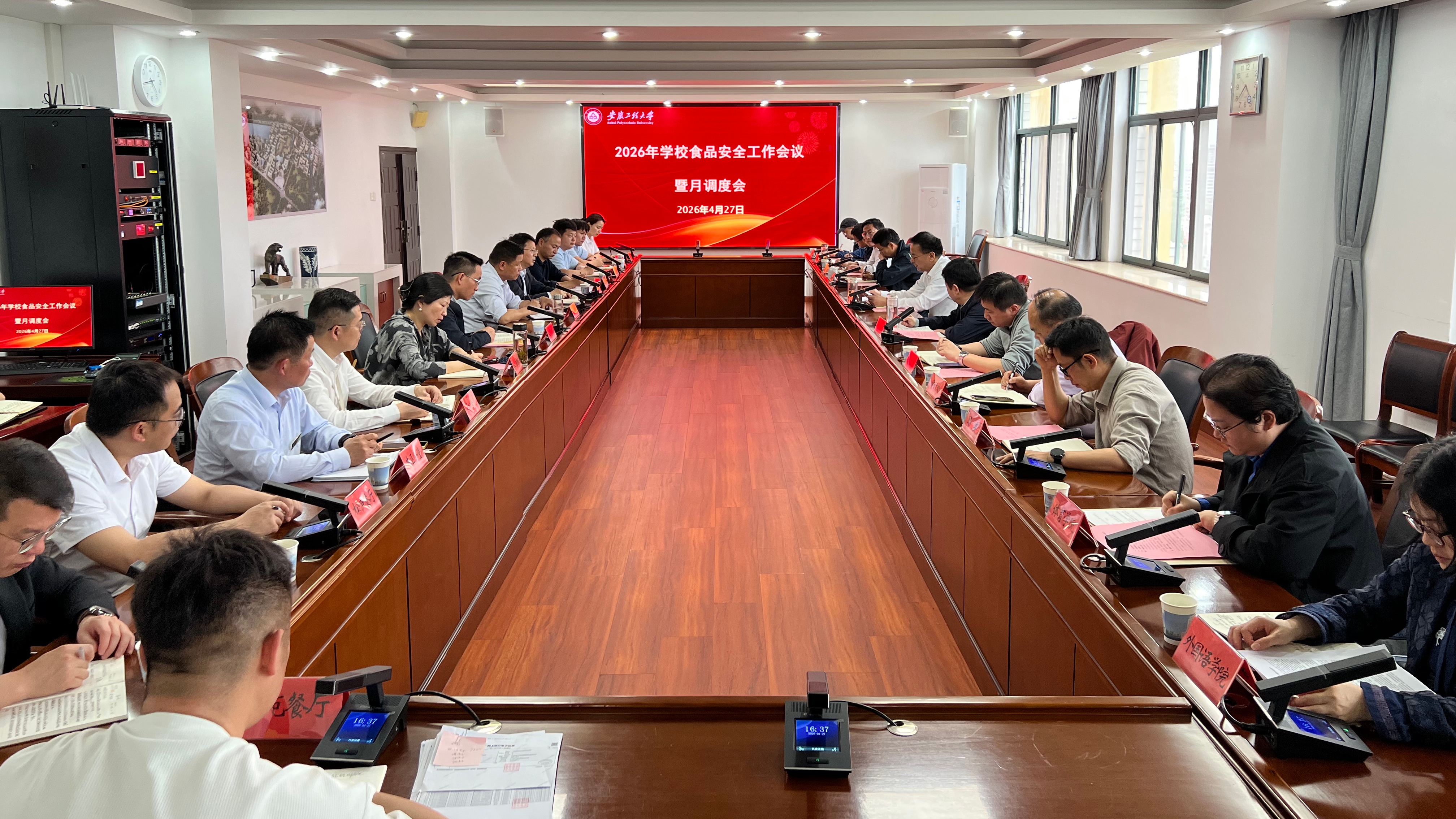 本网讯 4月27日,学校在A座1215会议室召开食品安全工作会议暨月调度会,校党委副书记、校长黄友锐,校党委常委、副校长、食品安全总监张开炳出席。学校食品安全工作领导小组成员、食堂考核领导小组成员、食堂经理及两校区食品安全管理员参会。会议由张开炳主持。