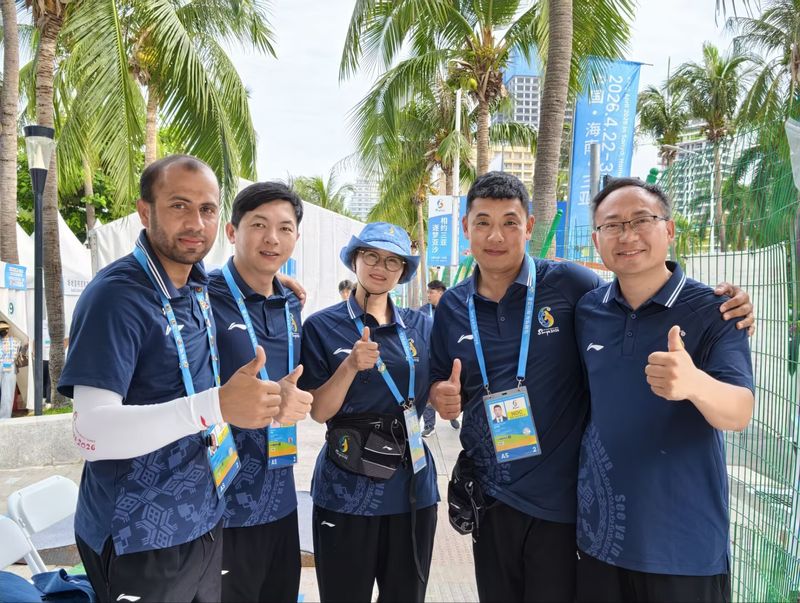本网讯 近日,2026年第六届三亚亚洲沙滩运动会落幕。经国家体育总局严格遴选选调,我校薛保红、李品仙、阿里3名教师成功入选本届亚洲沙滩运动会沙滩卡巴迪项目技术官员,圆满完成赛事全部执裁与技术保障任务。