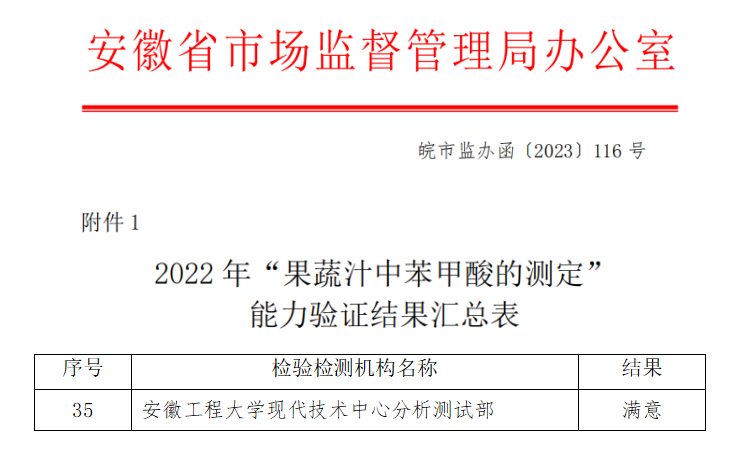近日,我部门顺利通过安徽省市场监督管理局组织开展的2022年度检验检测机构能力验证活动。