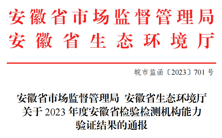 近日,我部门顺利通过安徽省市场监督管理局组织开展的2023年度检验检测机构能力验证活动。
