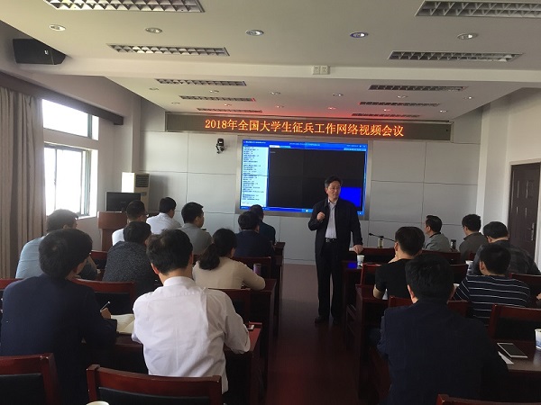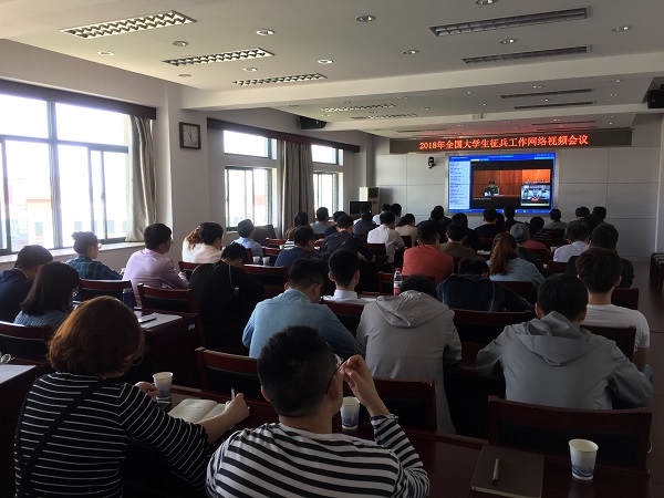 4月3日,教育部、中央军委国防动员部在北京召开2018年全国大学生征兵工作网络视频会议,重温习主席给南开大学新入伍大学生回信精神,研究分析形势任务,对2018年度大学生征兵工作进行全面部署。教育部副部长孙尧,军委国防动员部副部长牟明滨少将出席会议并讲话。我校在A座1121会议室设分会场,党委常委、副校长郭兴众出席会议,学校大学生征兵工作领导小组成员单位负责人、各学院党委副书记、辅导员及学生代表50余人收看会议实况。