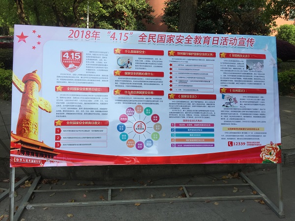 今年4月15日是第三个全民国家安全教育日,为了深入学习贯彻习近平新时代中国特色社会主义思想和十九大精神,让国家安全教育落到实处,进一步提升广大师生国家安全意识,在校园营造时刻不忘国家安全的良好氛围,学校组织开展2018年国家安全教育日系列宣传活动。