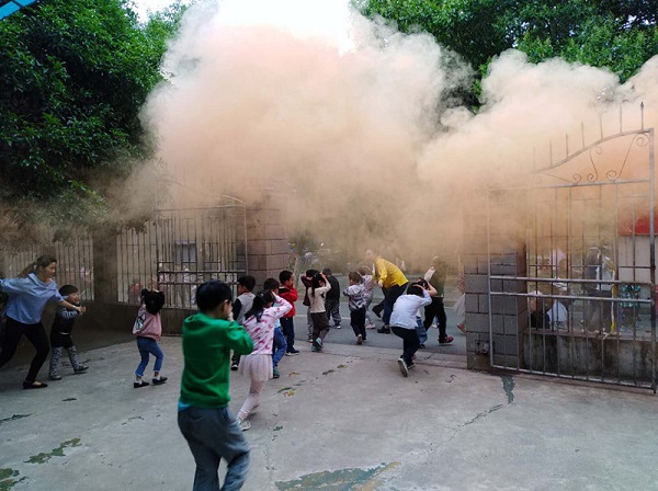防灾减灾从娃娃抓起,5月11日学校附属幼儿园师生开展5.12防震疏散演练。