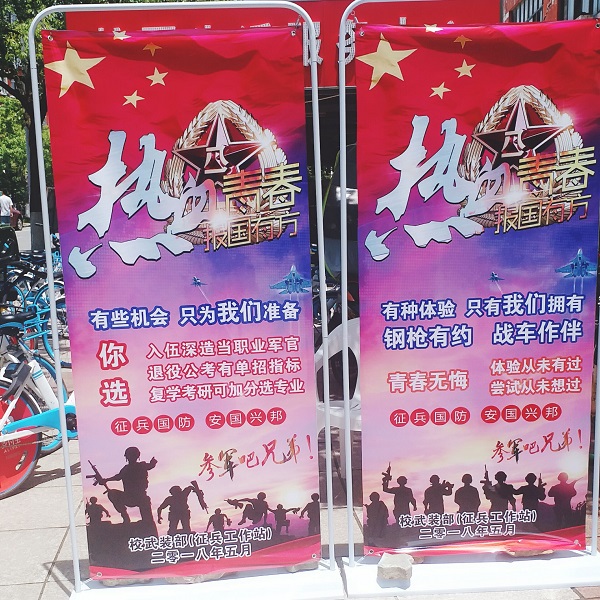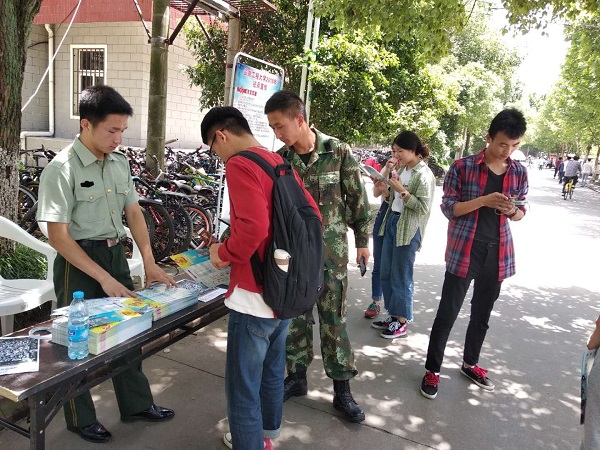 学校武装部积极创新征兵宣传模式,注重线下线上同步宣传,推动征兵宣传“进教室、进宿舍、进食堂”,增强征兵宣传效果。学校武装部利用展板、海报、横幅、宣传手册、微信公众号、校园网、QQ群等多渠道开展征兵宣传,制作“优秀退役大学生士兵风采展示”宣传板,在学生宿舍张贴宣传海报,在学生食堂大屏幕滚动播出征兵宣传公益片,走进课堂开展宣讲,做到征兵宣传“全方位、无死角、全覆盖”,有效激发大学生参军热情。