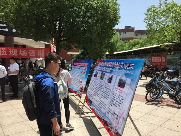 咨询活动现场,工作人员为有应征意向的学生耐心解疑答惑,为他们详细解读参军入伍的优惠政策及相关要求。学校退役大学生士兵结合自己的亲身经历和切身感受,从大学生如何向军人角色转变、军旅生活及职业生涯的规划等方面,与前来咨询的同学进行了分享。现场气氛热烈,前来现场咨询的学生络绎不绝。