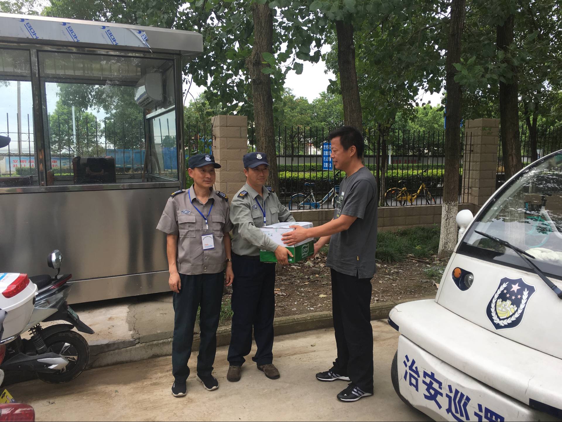 8月27日上午,保卫处全体党员开展党员活动日活动,为战斗在一线的保安公司员工送去清凉。对他们冒酷暑,战高温的辛勤工作给与肯定。同时,希望全体保安人员再接再厉,继续严格执行保卫处的规章制度,结合暑期特点,加强校内水域和路面交通管理,严防溺水及交通事故的发生,确保校园安全。