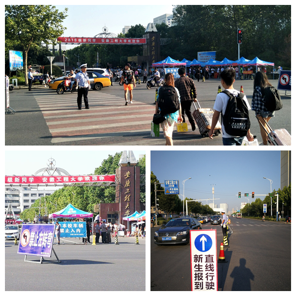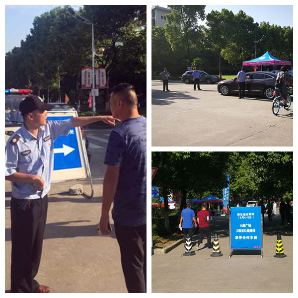 在校内外布置了有效的交通标志标示,保卫处全体员工、保安全员上岗,有序控制车流、人流,加强校园巡逻防范,报到现场秩序稳定,校园平安。