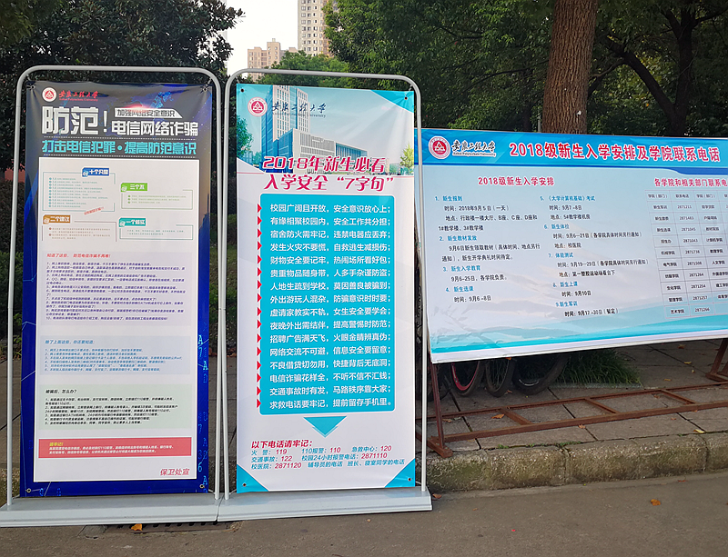 通过展板、“平安安工程”微信公众号开展宣传,对报到期间易发生的诈骗、盗窃案件进行安全提示。