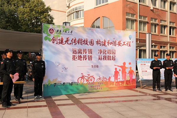 为进一步做好我校打击传销工作,增强广大学生防范传销、抵制传销的意识和能力,10月31日下午,学校保卫处、学生处、管理工程学院,在C座广场前开展“创建无传销校园,构建和谐安工程”反传销知识宣传活动。