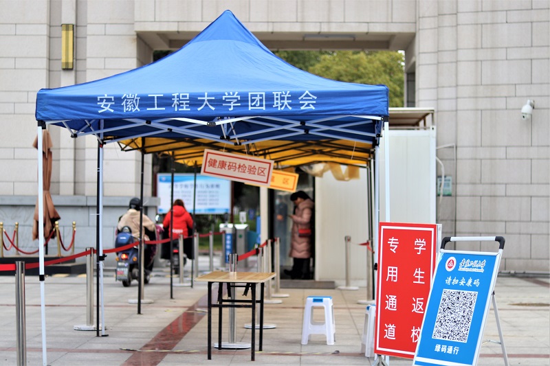 为保障学生平安错峰返校,保卫处召开处务会,研究部署春季学期学生返校安保工作方案,明确分工,压实责任。提前与鸠江交警、城东派出所民警协调沟通,保证学生返校期间校园周边交通疏导和治安秩序维护。在南大门、小北门设置返校专用通道,搭建帐篷,划分等待区、测温区和验码区,放置引导标语,布置警戒线。与学生处、后勤保障处积极配合,克服阴雨天气带来的困难,为返校学生检测体温、核验安康码和身份证明,做好校园清洁消毒,引导学生有序入校。