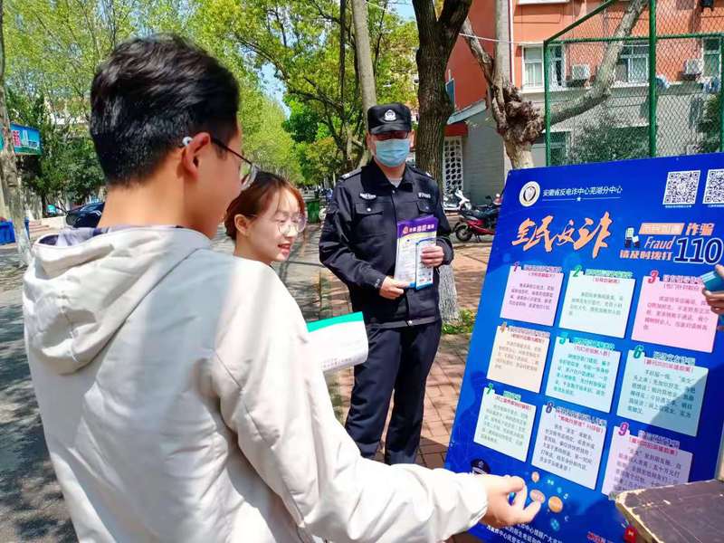 “校内房屋出租到哪里备案登记?”“校园门禁权限如何开通?”“大学毕业生参军入伍有什么政策待遇?”……,带着一个又一个疑问,活动现场的咨询台前围满了不少需要咨询的师生,工作人员热情服务师生,耐心答疑解惑,看到“求助”的师生得到了满意的答复,他们的脸上也绽放出了舒心的笑容。“收到可疑信息或接到陌生电话,千万要核实,不要轻信,否则就会陷入电信诈骗的漩涡”,工作人员的一句温馨的提醒,为问询师生防范电信诈骗、提高安全意识吃下了一颗“定心丸”。