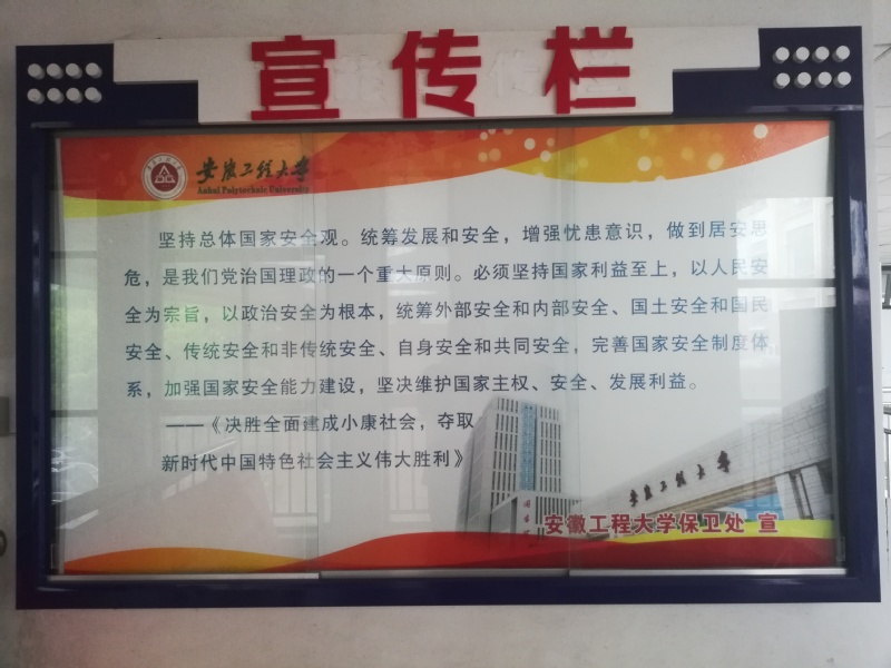 为“践行总体国家安全观、统筹发展和安全、统筹传统安全和非传统安全、营造庆祝建党100周年良好氛围”,切实提高广大师生的国家安全意识和法律意识,筑牢总体国家安全观,学校保卫处与警务站联合,在校园内人流密集场所设置横幅展板,发放宣传材料和纪念品,详细介绍“总体国家安全观”。通过现场讲解向师生们解读《国家安全法》、《反恐怖主义法》、《网络安全法》等法律法规,使师生们增强了国家安全意识,为庆祝建党100周年营造良好气氛。