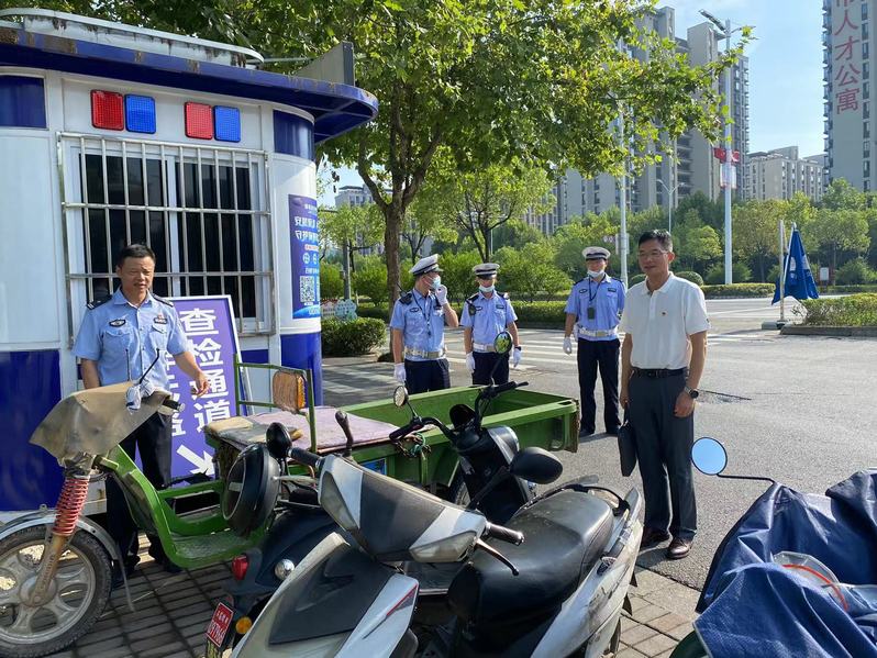 会后,双方来到三中队下辖的位于神山路和中江大道交叉口的芜湖市交通安全示范岗亭进行现场观摩学习。交警同志现场对未佩戴头盔、未安全行驶等行为进行现场劝导、处置,执法文明、交通有序。交警同志文明执法、礼貌服务、担当作为,给大家留下了深刻印象,也激励大家进一步履职尽责,积极主动作为,助力学校平安校园、和谐校园建设。文才新同志接受现场采访,对交警同志战酷暑、斗高温,坚守岗位表示由衷钦佩,同时邀请交警同志多到学校走走,在学校交通安全方面多给予工作上的指导帮助,进一步提升师生安全意识,筑牢校园交通安全防线。(文:宋建军,图:吴昊宇,审核:文才新)