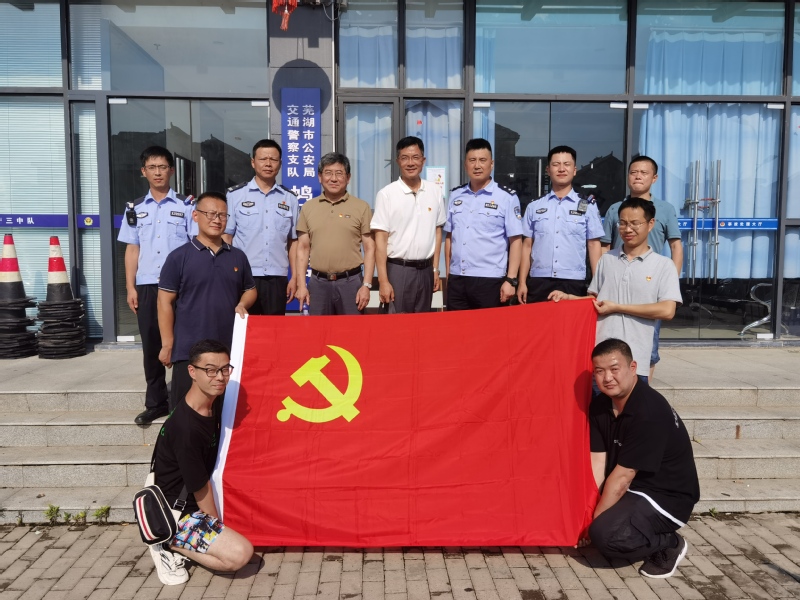 7月22日,保卫处党支部在支部书记文才新同志带领下,一行8人赴芜湖市鸠江交警大队三中队开展结对共建暨7月份主题党日活动。