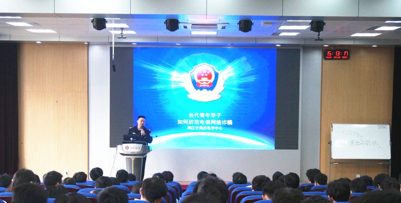 为提升我校师生防范电信网络诈骗意识和能力,全力保障师生财产安全,建设平安、和谐校园。3月15日下午,保卫处与建筑工程学院联合举办防范电信网络诈骗知识讲座,本次讲座由辅导员安全教育工作室承办,邀请芜湖市公安局鸠江分局网安工作站负责人施飞飞担任主讲嘉宾,共计130余名师生现场聆听讲座。