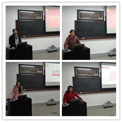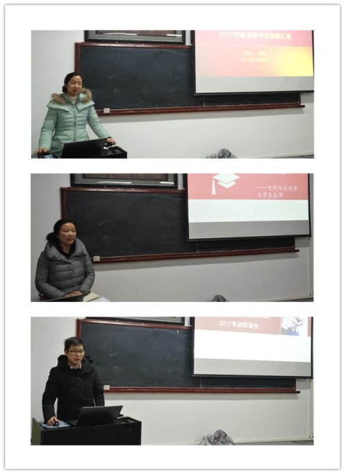 杨会成首先对《关于做好2017年度二级党组织书记和基层党支部书记党建述职评议考核工作的通知》(党组字【2017】28号)文件精神进行了解读,并就述职评议过程及考核打分进行了说明。紧接着,学院11个支部书记围绕深入学习宣传贯彻落实党的十九大精神,推动党的十九大精神落地生根情况;履行基层党建工作责任情况;推进“两学一做”学习教育常态化制度化,开展“讲重作”专题教育、专题警示教育情况;推进基层党组织标准化建设、落实“三会一课”等基本制度、开展党员活动日,提升组织力情况;加强思想政治工作情况;加强入党积极分子、发展对象、党员教育管理,做好党员发展工作情况;推动党建工作创新情况等方面内容进行述职。