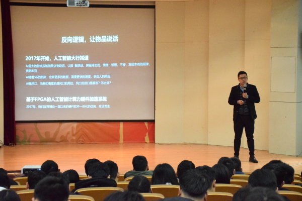 钱波提出“当代学生与时代的联系到底能强关联到什么程度?”以及“我们所学的专业基础、课程、从业方向是否本身就是传奇?”,从这两个问题出发,引发同学们积极思考。随后,他介绍了人工智能的背景及未来发展趋势,并结合自身多年工作经历以及合肥博焱智能科技有限公司的概况,深入浅出的讲解了新时代下大数据与人工智能技术的研发和应用。