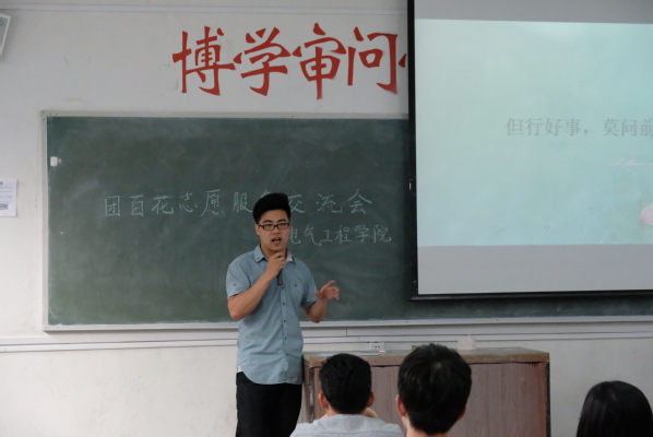 交流会上,学院团委副书记毕亚琴首先强调国家对志愿服务活动的支持和重视,介绍了电气学院近几年来在志愿服务活动中取得的成果,并对第六季“团百花”项目的负责人提出要求,希望让更多的学子在志愿服务中提升素质、充实生活、享受生命、升华灵魂、实现价值,不断推动电气学院志愿服务事业兴旺发达、薪火相传。