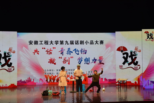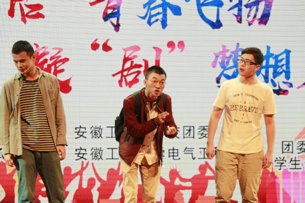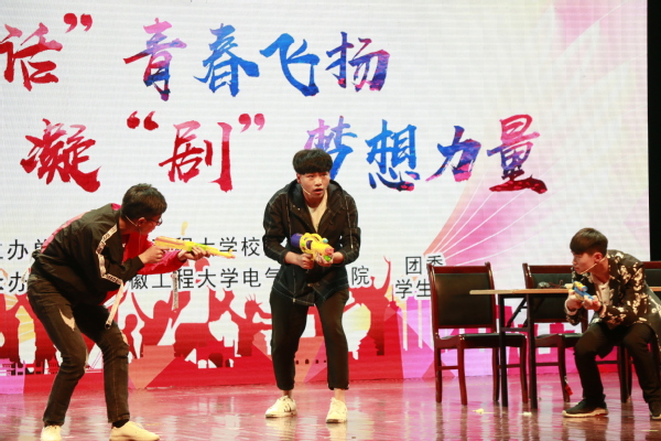 共“话”青春飞扬,凝“剧”梦想力量。512日晚,由校团委主办、电气工程学院团委和学生会承办的校第九届话剧小品大赛决赛在师生活动中心举行。经过初赛和复赛两个多月的层层选拔,共有8支队伍脱颖而出。电气工程学院党委书记杨会成、校团委书记冉昆玉、电气工程学院党委副书记郭全根观看了比赛。
