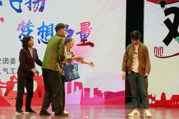 共“话”青春飞扬,凝“剧”梦想力量。5月12日晚,由校团委主办、电气工程学院团委和学生会承办的校第九届话剧小品大赛决赛在师生活动中心举行。经过初赛和复赛两个多月的层层选拔,共有8支队伍脱颖而出。电气工程学院党委书记杨会成、校团委书记冉昆玉、电气工程学院党委副书记郭全根观看了比赛。