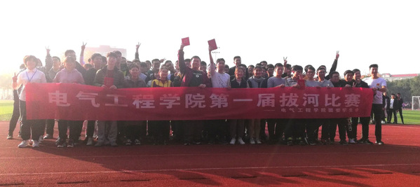 为丰富大学生课余生活,提高大学生身体素质,增强班级凝聚力,电气工程学院于11月28日下午在第二田径场成功举办 “防肺结核、走出宿舍、怀拥操场”拔河比赛决赛。该比赛共分为三轮,面向大一至大三的各个专业班级,受众广,参与度高。经过初赛59支班级代表队885人的PK,以及第二轮29支班级代表队435人的激烈角逐,最终,6支班级代表队共90人晋级决赛。