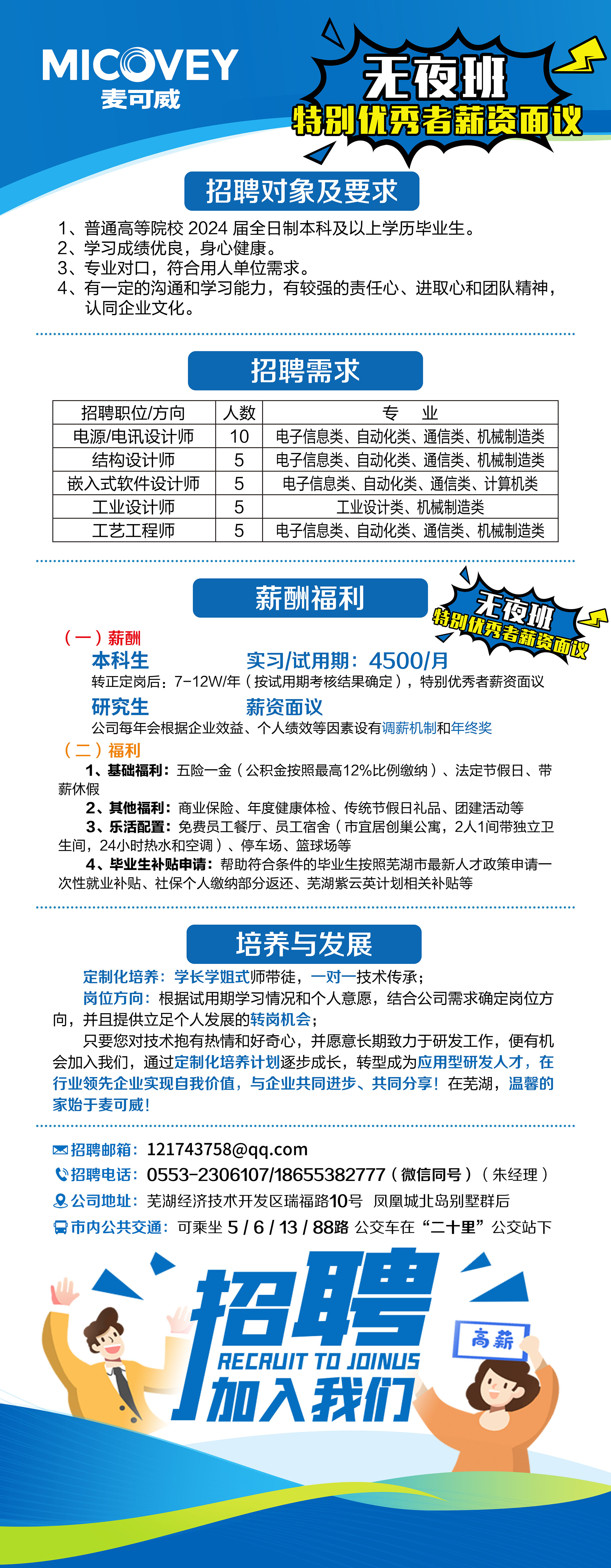 芜湖麦可威电磁科技有限公司2024校园招聘简章及专场宣讲招聘