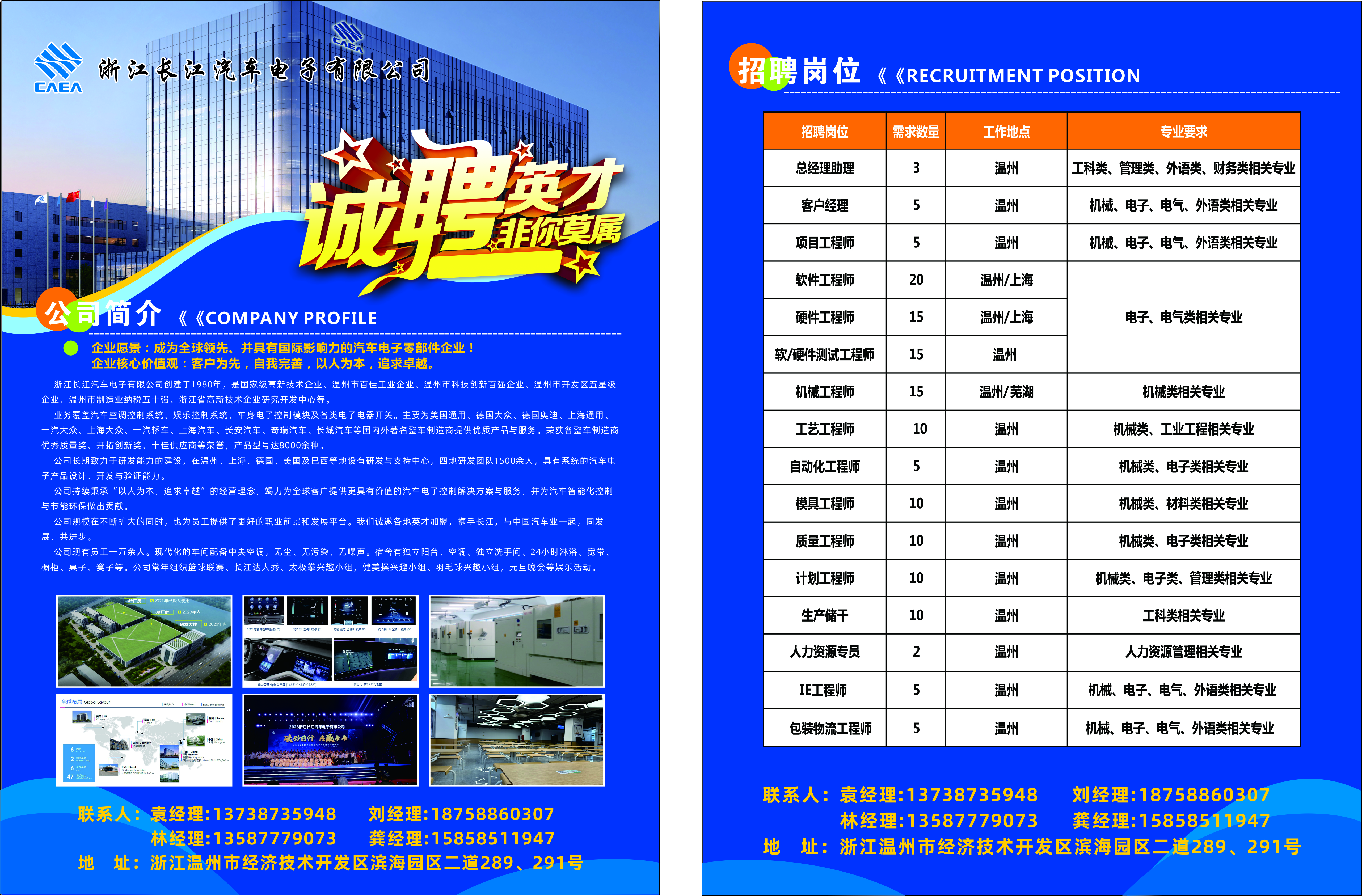 浙江长江汽车电子有限公司招聘简章及专场宣讲招聘