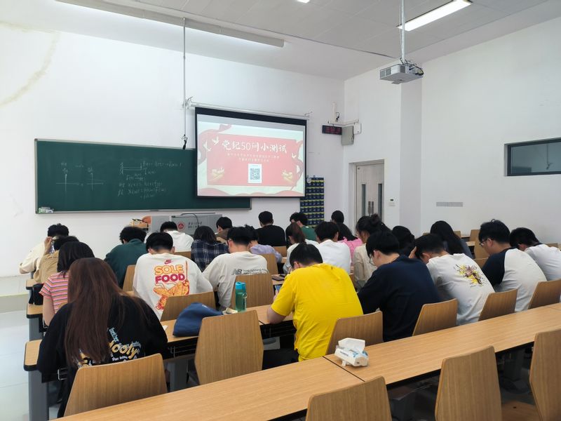 5月15日,党支部在X102教室开展“党纪50问小测试”。支部以《中国共产党纪律处分条例》为主要内容,自拟了50条测试题目,支部全体党员集中考试,对支部成员的学习效果进行检测。