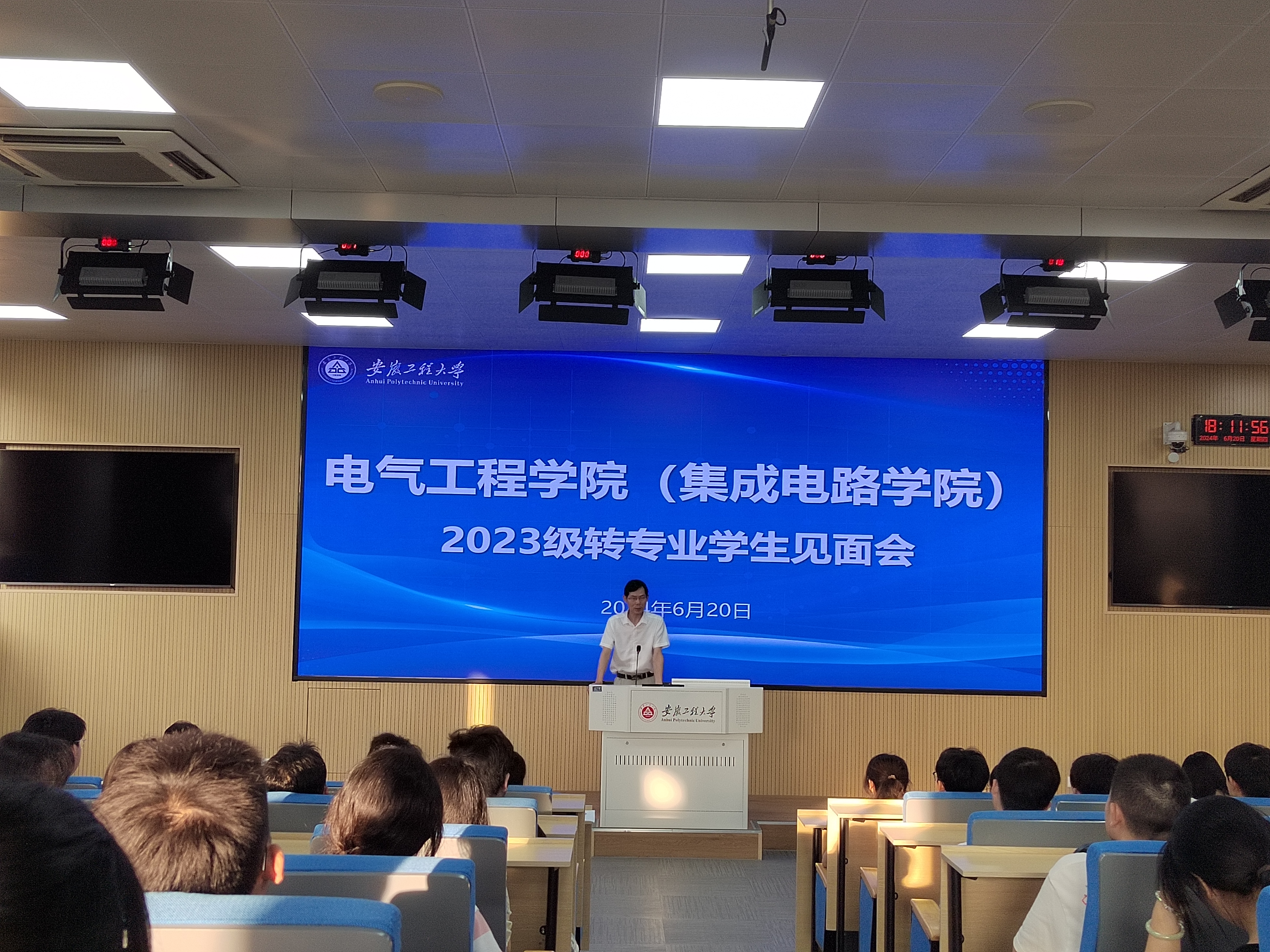 6月20日,电气工程学院(集成电路学院)在5教217教室举行2023级转专业学生见面会。学院党委书记杨会成、党委副书记迟传德、99名转入学院的新同学和全体23级辅导员参加见面会。会议由迟传德主持。