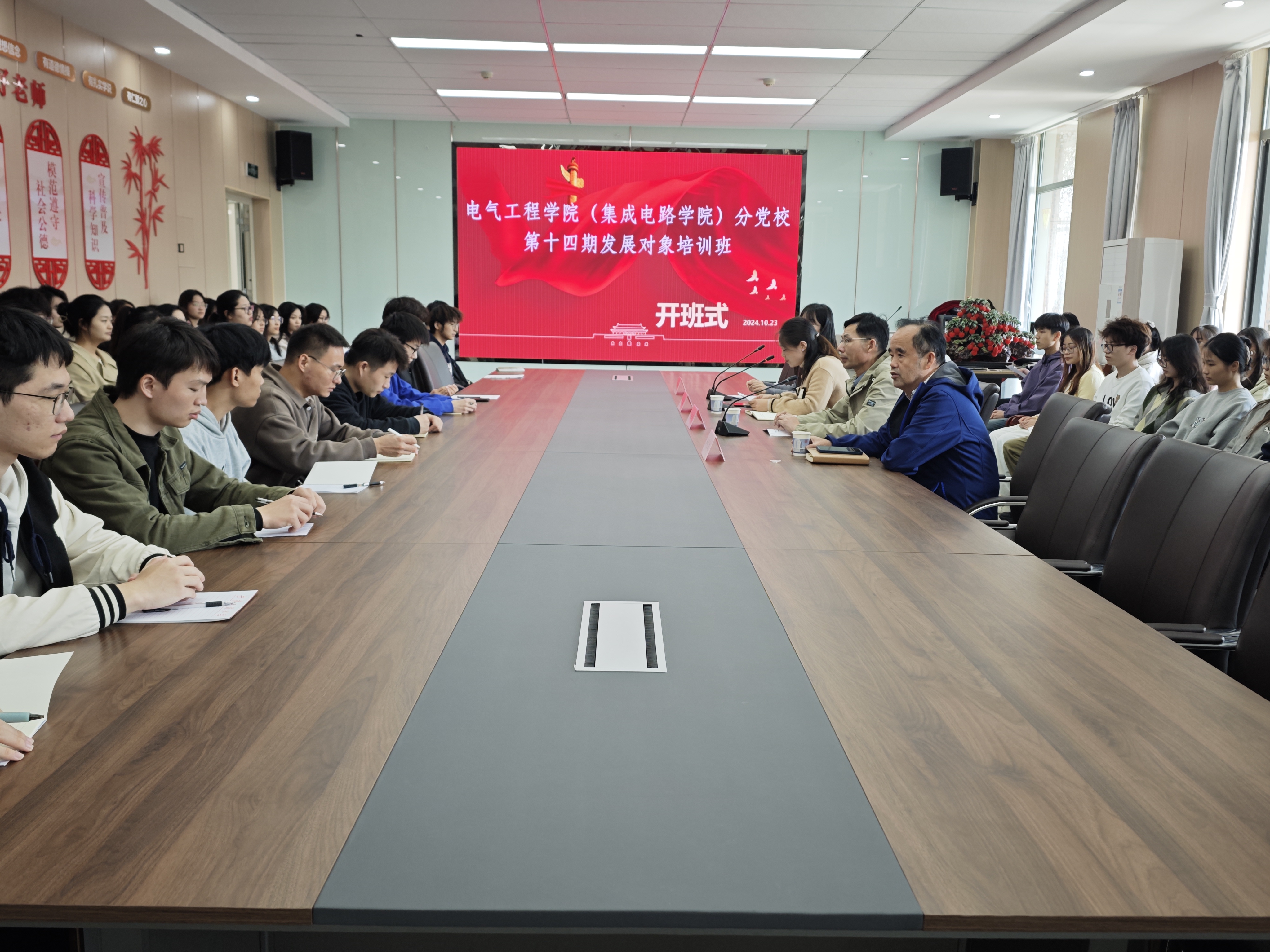 为深入推进学校“三全六专”育人实践工作,引导学生“正”起来,切实提升党校学员政治理论素养,10月23日,电气工程学院(集成电路学院)分党校在国际工程师学院龙胜楼206会议室隆重举行第十四期发展对象培训班开班仪式。学院党委书记杨会成、组织员滕敏及全体发展对象出席仪式,校第二党校督导组组长、人工智能学院正处级组织员伊长文应邀来院指导,开班式由培训班班主任曹聪主持。